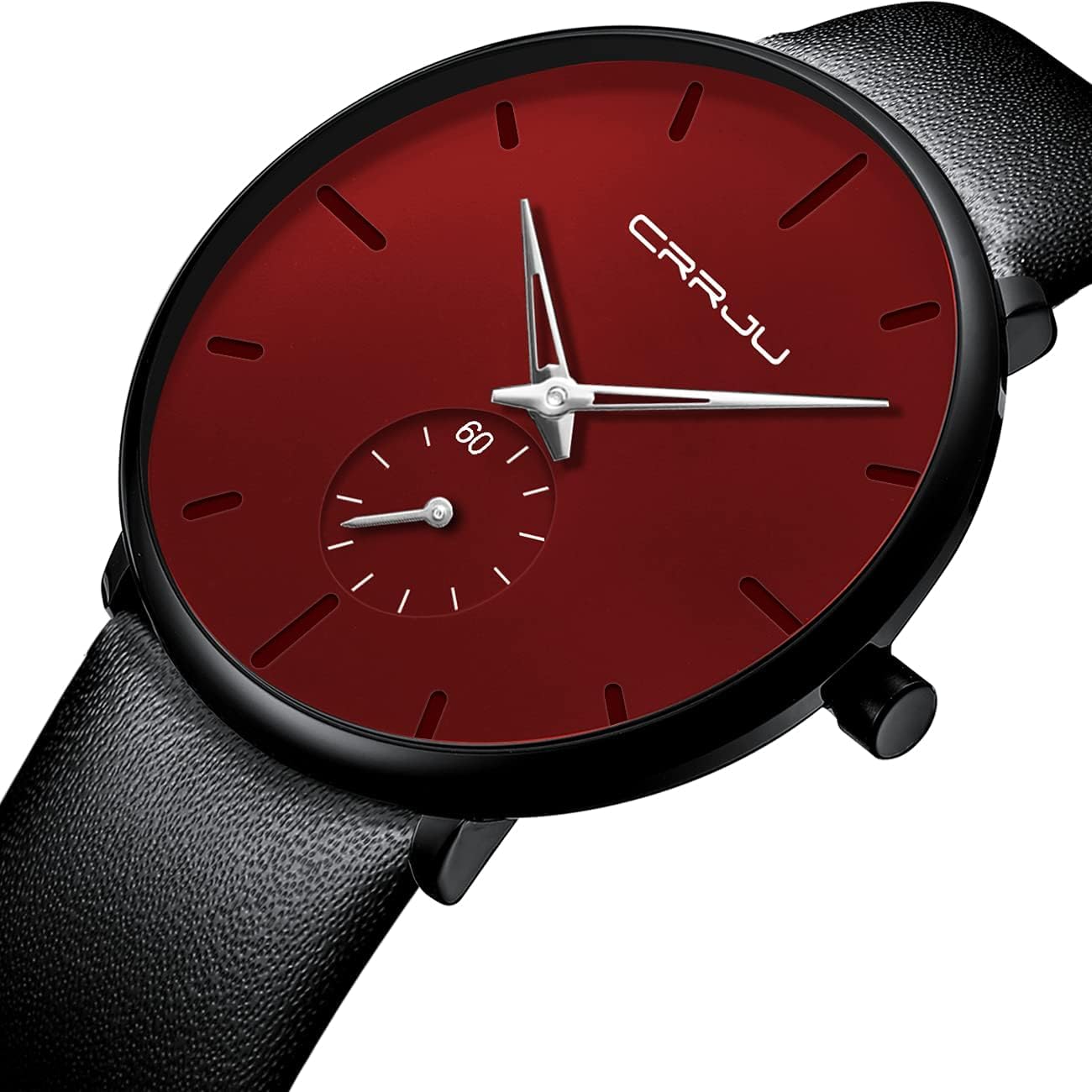 Mens Watches Ultra-Thin Minimalist Waterproof-Fashion Wrist Watch for Men Unisex Dress with Leather Band
