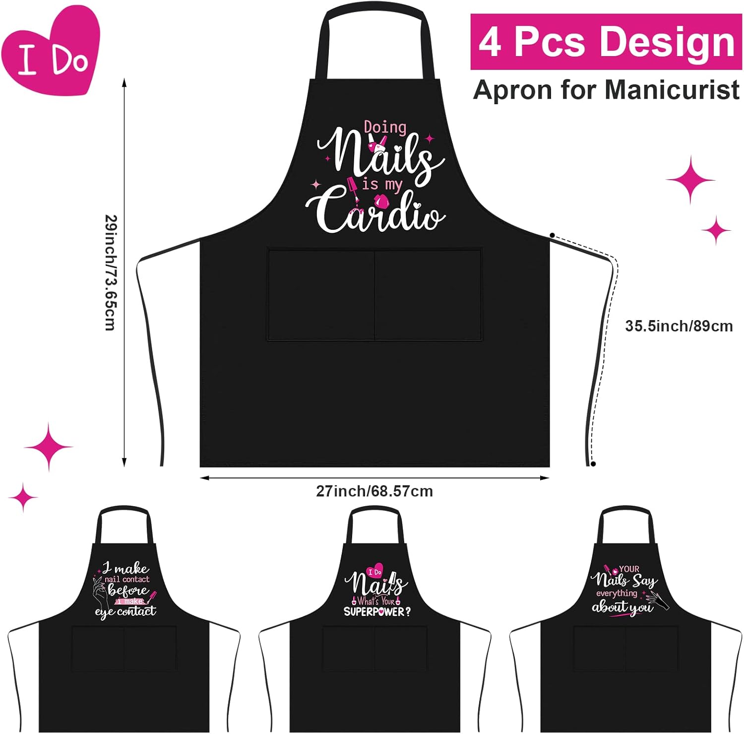 Mepase 4 Pieces Nail Tech Aprons with Pockets Funny Quotes Apron for Nail Technician Manicurists Art Supplies for Salons Cosmetology Smock