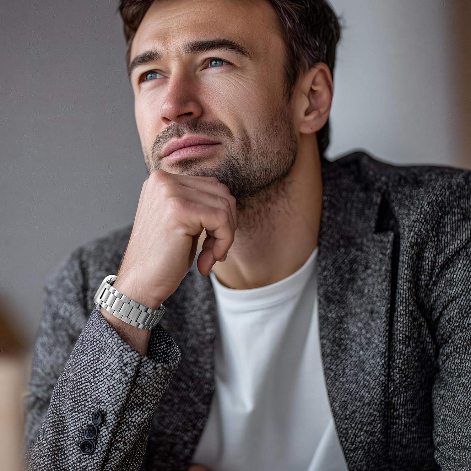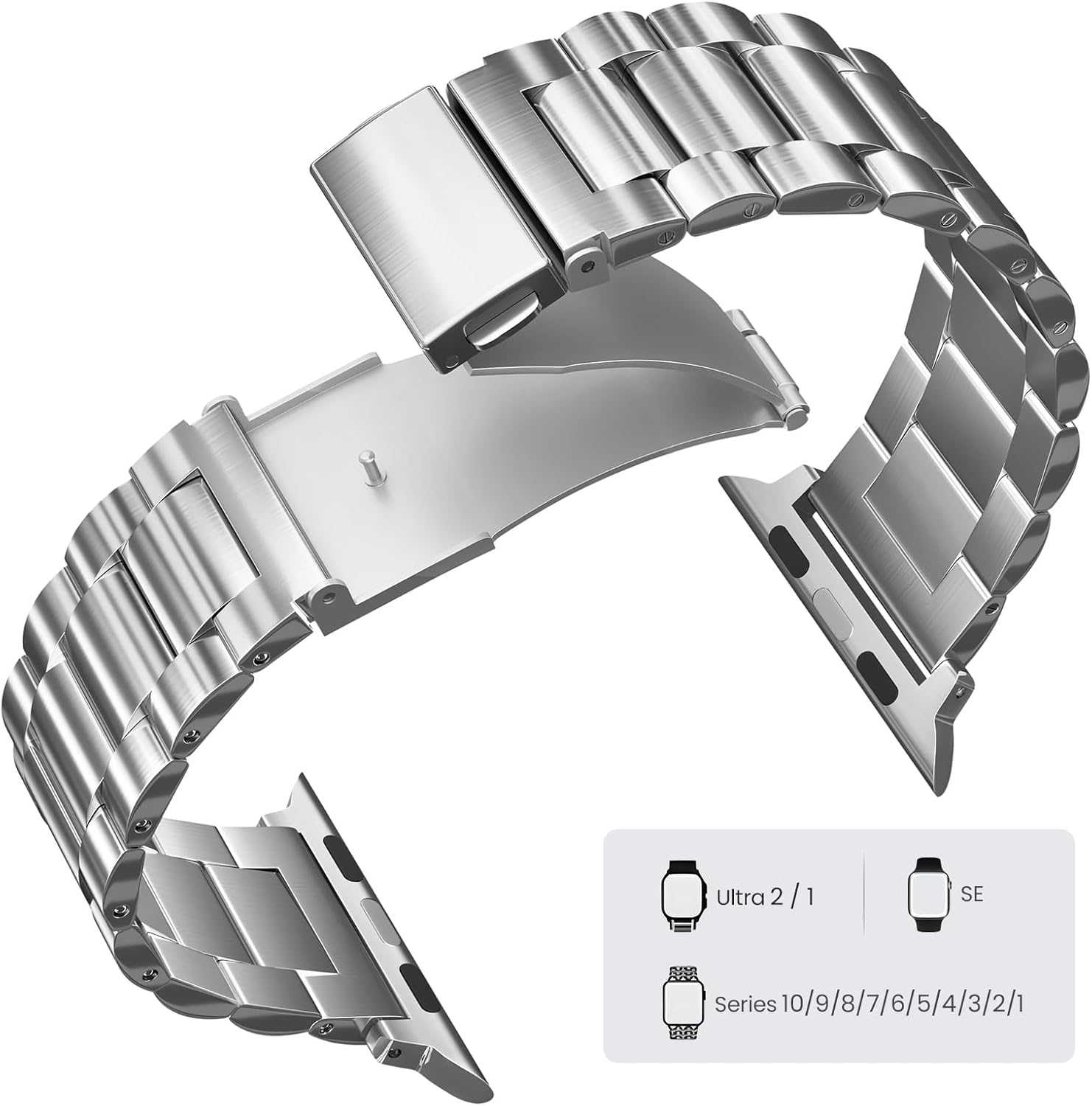 Metal Band Compatible with Apple Watch Bands for Men 49mm 46mm 45mm 44mm, Stainless Steel Strap for iwatch Bands Ultra 3 2 SE 3 2 Series11 10 9 8 7 6 5 4 3 2 1 Business Casual Fashion