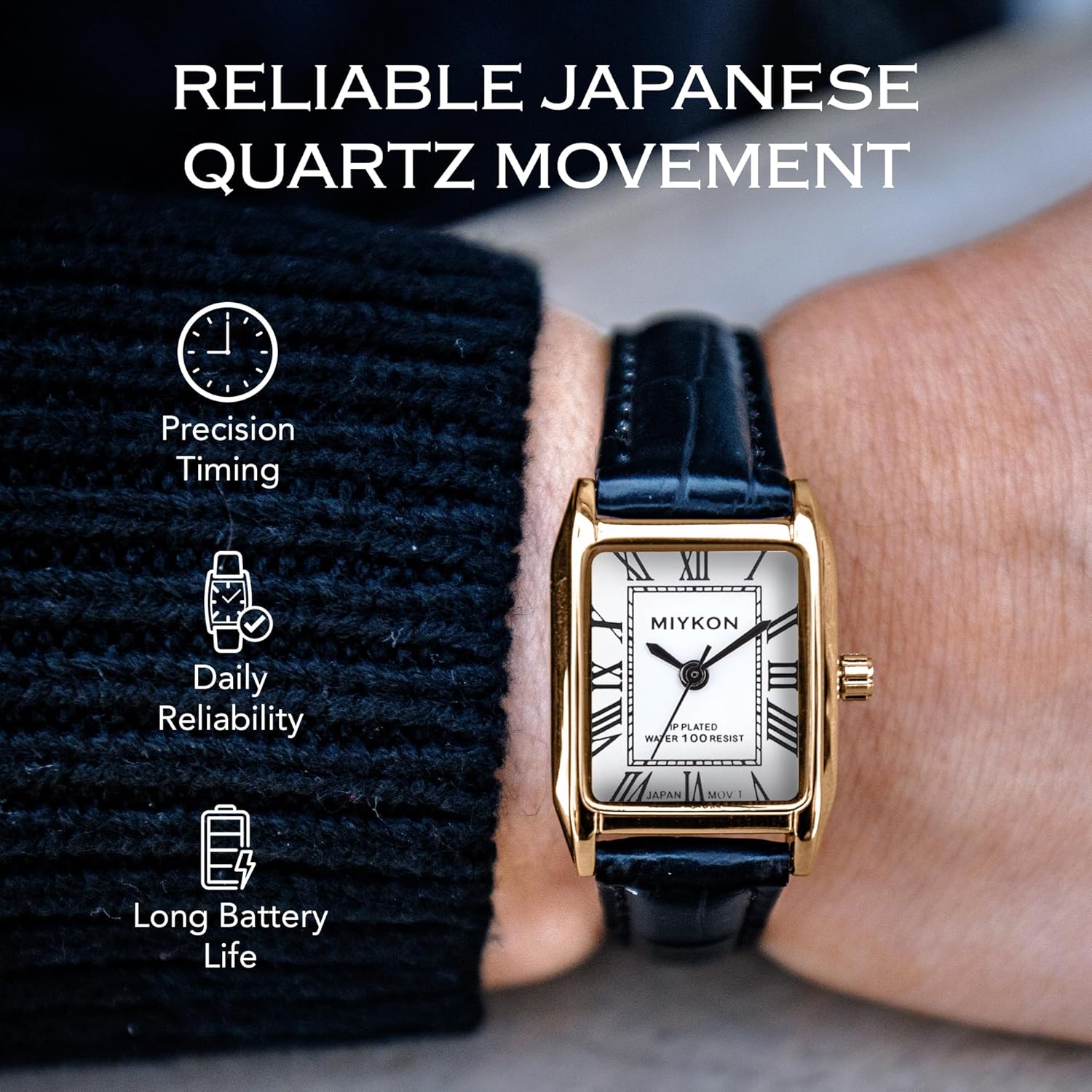 Miykon Vintage Watches for Women – Small Dainty Tank, Square Womens Watch with Genuine Leather Strap – Second Hand, Japanese Quartz, Waterproof to 100ft