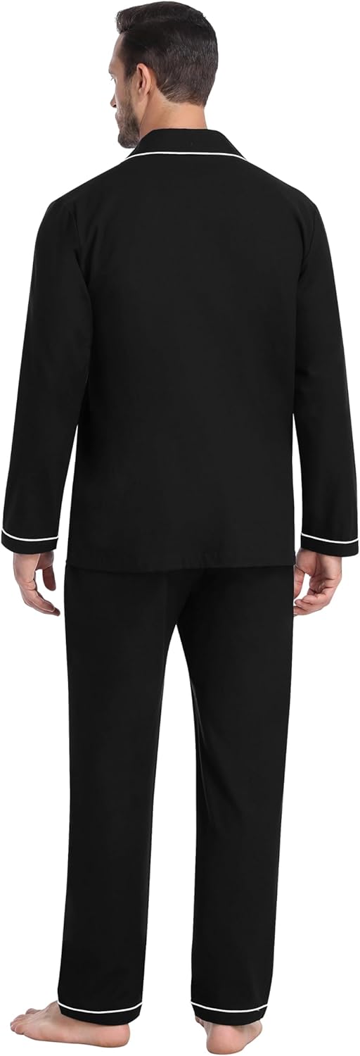 MoFiz Mens Pajama Set Soft Cotton Button Down Notched Collar Pjs Long Sleeve 2 Piece Sleepwear Lounge Nightwear with Pocket
