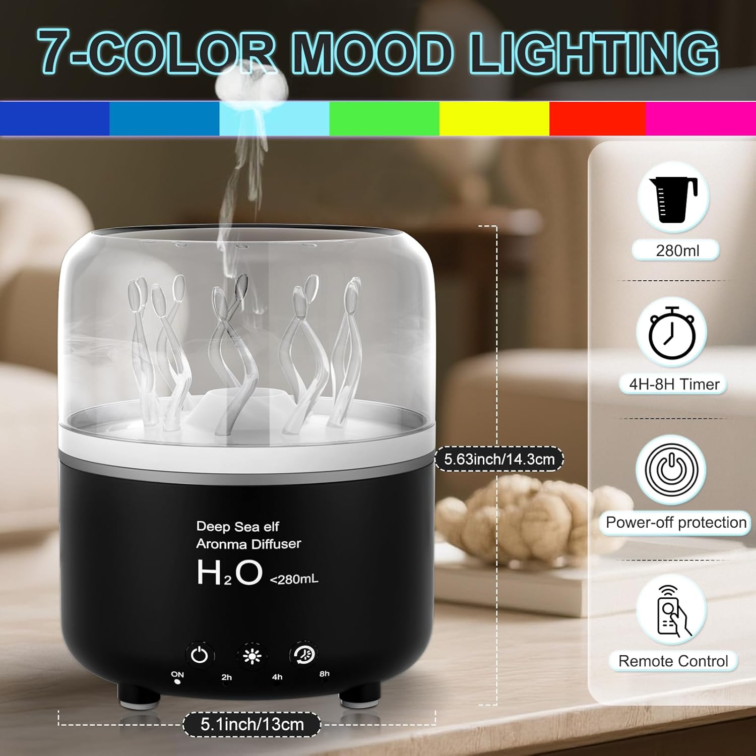 Morbou Essential Oil Diffuser with Jellyfish Spray & Sea Anemone Rotation, 280ml Ultrasonic Aromatherapy Machine,7-Color LED Night Light Quiet Mist for Bedroom, Remote Control