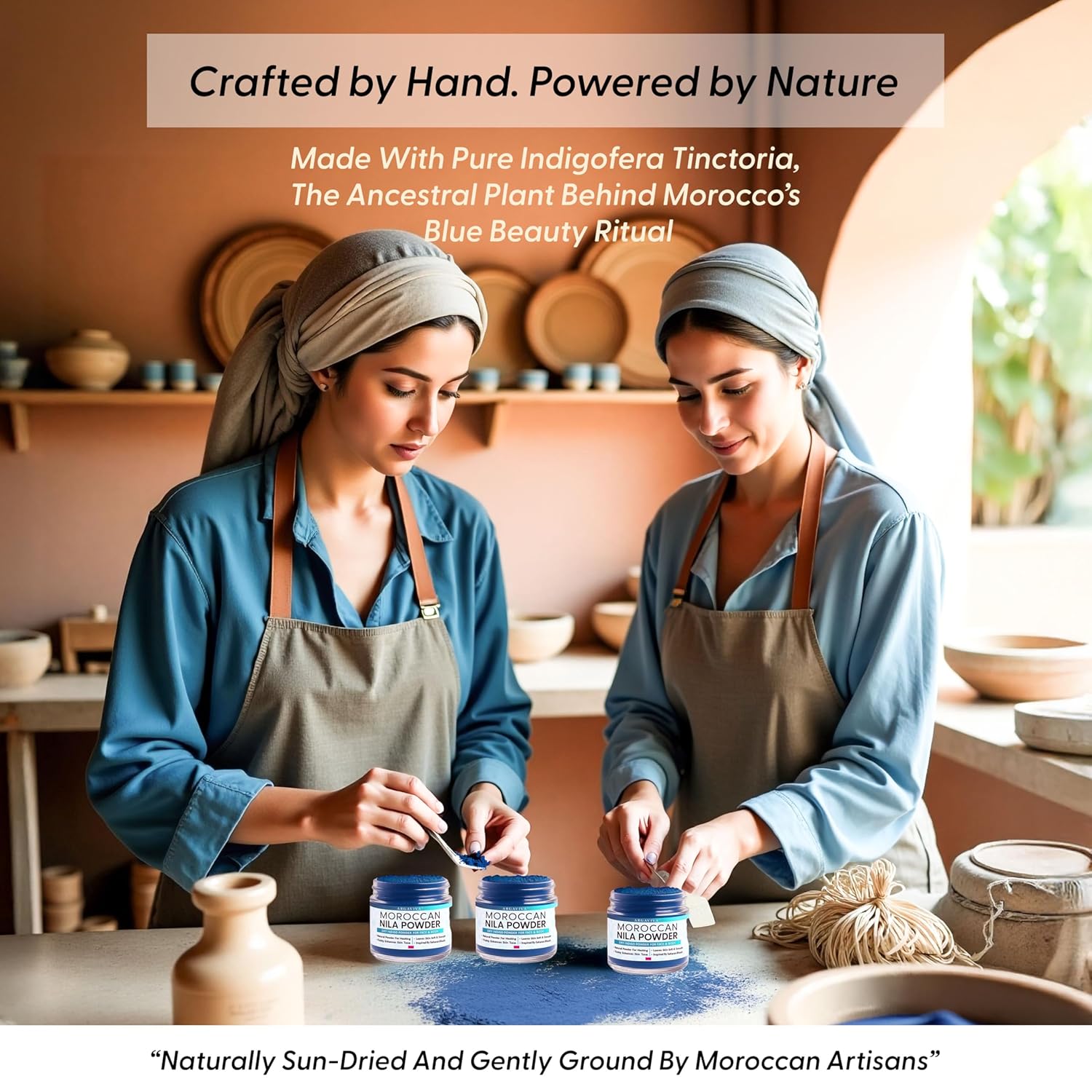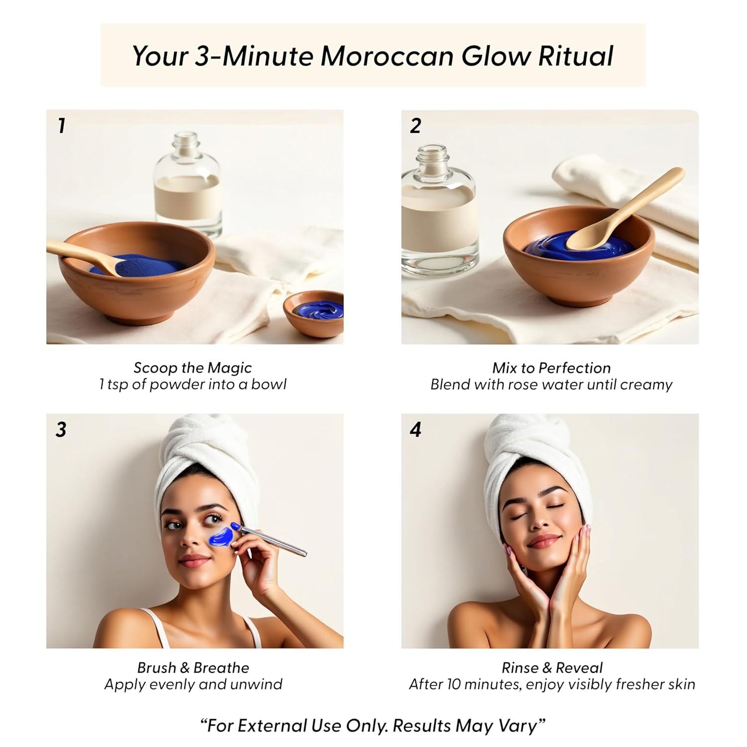 Moroccan Nila Powder – Natural Blue Clay Mask for Face, Body & Hair – Exfoliates for Glowing, Even-Toned Skin – Plant-Based & Traditional Hammam Skincare for All Skin Types
