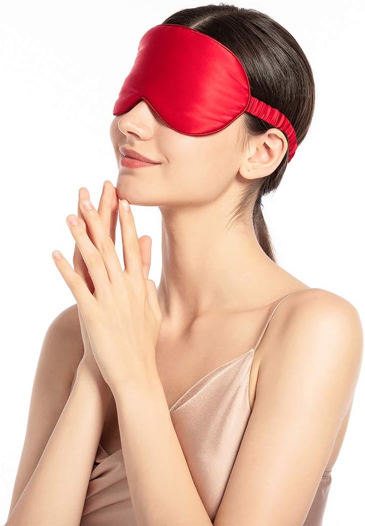 Mulberry Natural Silk Sleep Mask for Women & Men with Elastic Strap, Super Soft Sleeping Eye Mask, Size M, (Red)