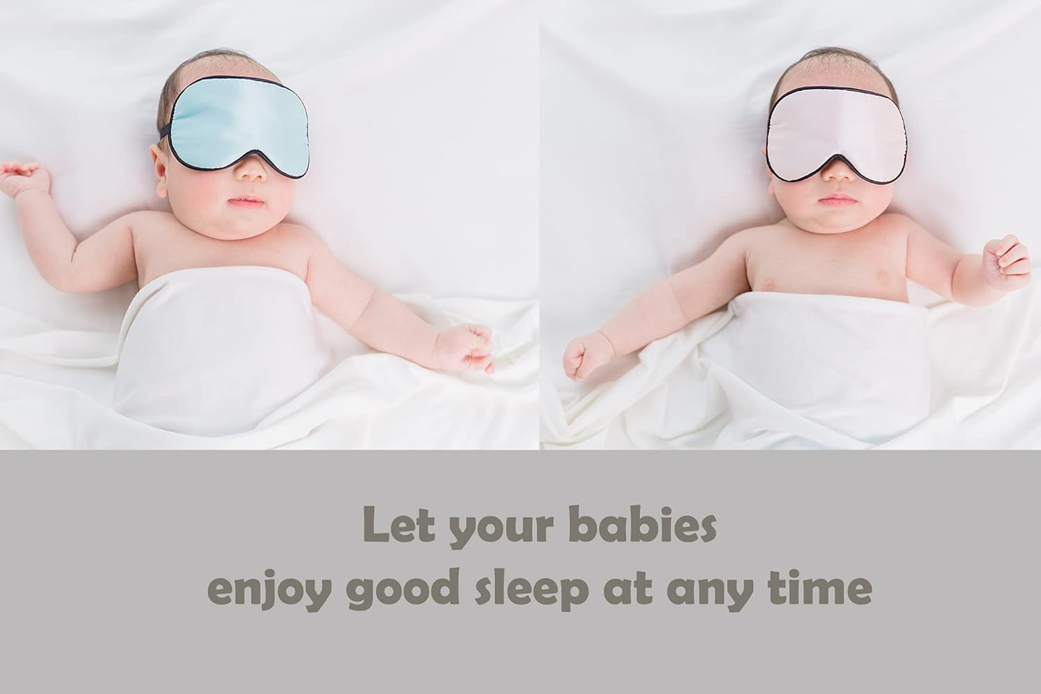 Mulberry Silk Sleep Mask with Adjustable Strap for Kids,Cute Sleeping Eye Mask for Newborns, 2 Packs Black&White