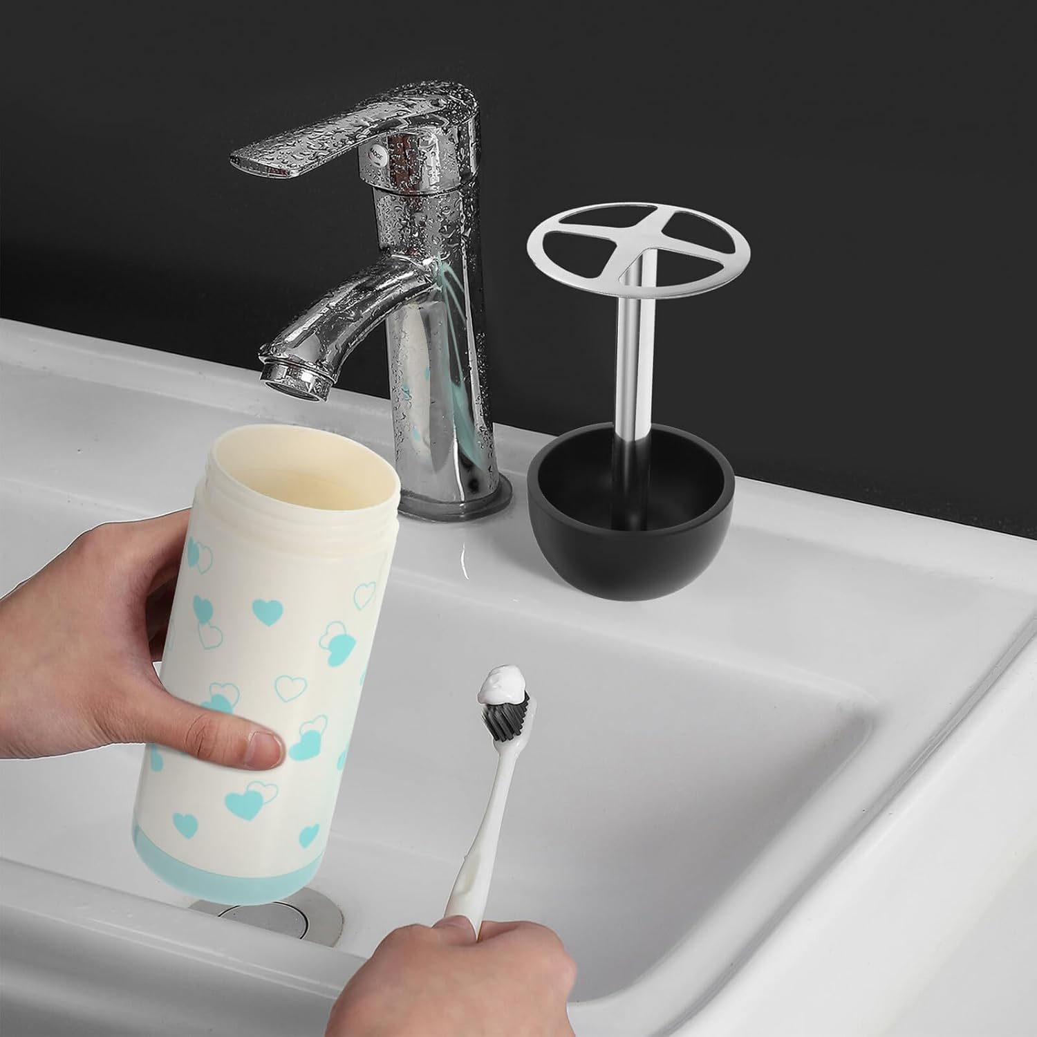 Multi-Functional Toothbrush Holder Stand Stainless Steel Bathroom Storage Organizer Black for Home Hotel Kitchen Easy to Clean Oral Care