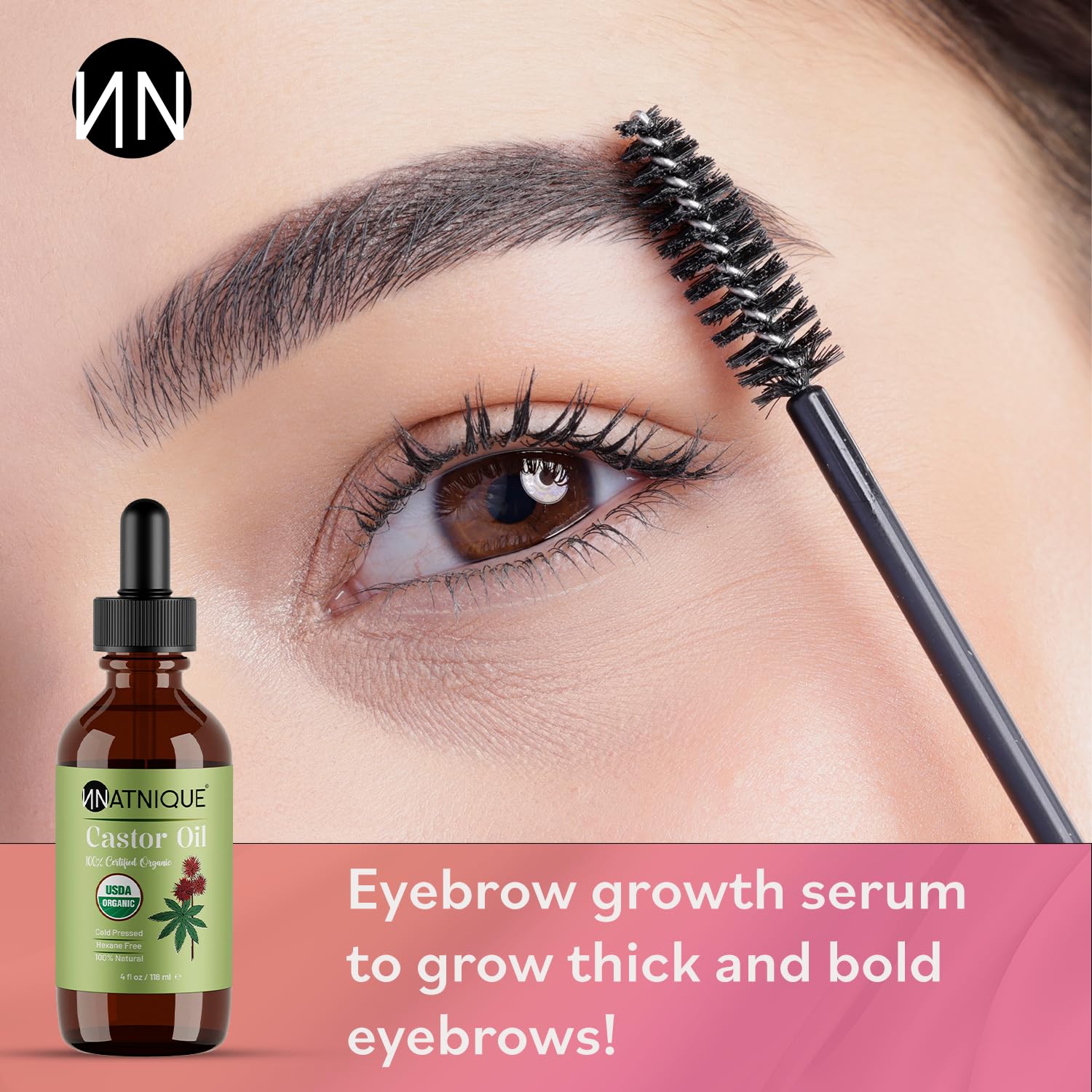 Natnique Castor Oil 4oz – USDA Certified Organic, 100% Pure Cold Pressed Unrefined Oil for Hair Growth, Eyelashes, Eyebrows & Scalp – Natural Skin Moisturizer, Lash Serum & Hair Treatment