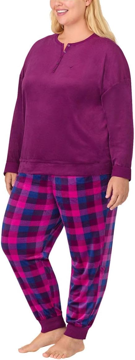 Nautica Womens Pajamas – Cozy Silky Fleece – 2 Piece Long Sleeve Winter Sleepwear Set for Women