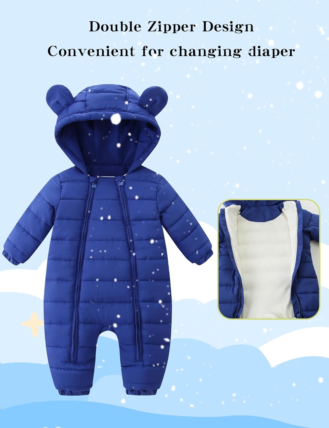 Newborn Baby Snowsuit Cute Bear Hoodie Infant Warm Rompers Unisex Double Zipper Jumpsuit Outwear