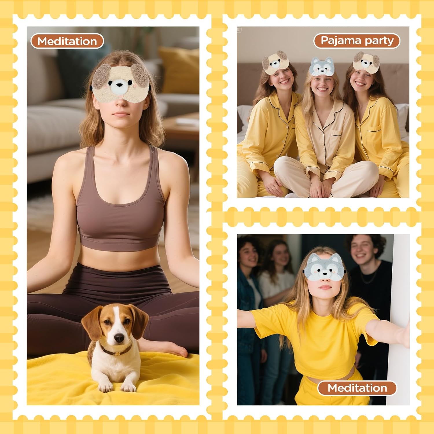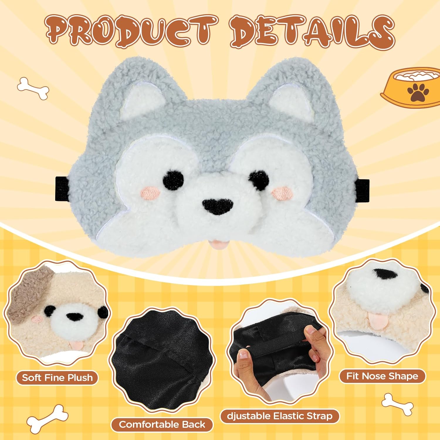 NEWEST 2 Pcs Cute Plush Dog Sleeping Masks, Soft Puppy Eye Cover for Sleeping with Adjustable Elastic Strap, Funny Cartoon Animal Eyeshade Blindfold for Blackout Travel Nap Night Sleep Party Girl Boy