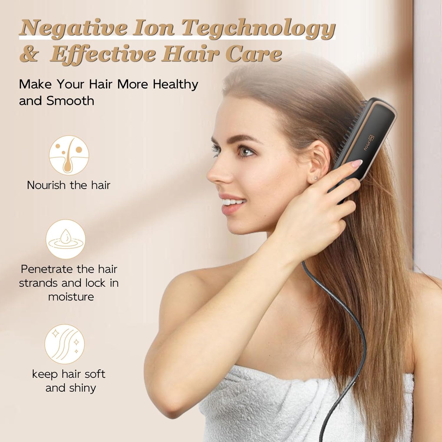 【Negative Ion Technology & Superior Hair Care】Our hair straightening brush incorporates negative ion technology, allowing you to achieve your desired straightening results quickly. This feature not only makes the straightening process easier but also helps minimize damage to your hair, ensuring effective protection and leaving you with a healthier, more beautiful look.
