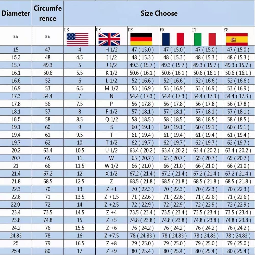Ring Sizes: Available in Standard US Ring Sizes 4 to 17, Include Half Sizes