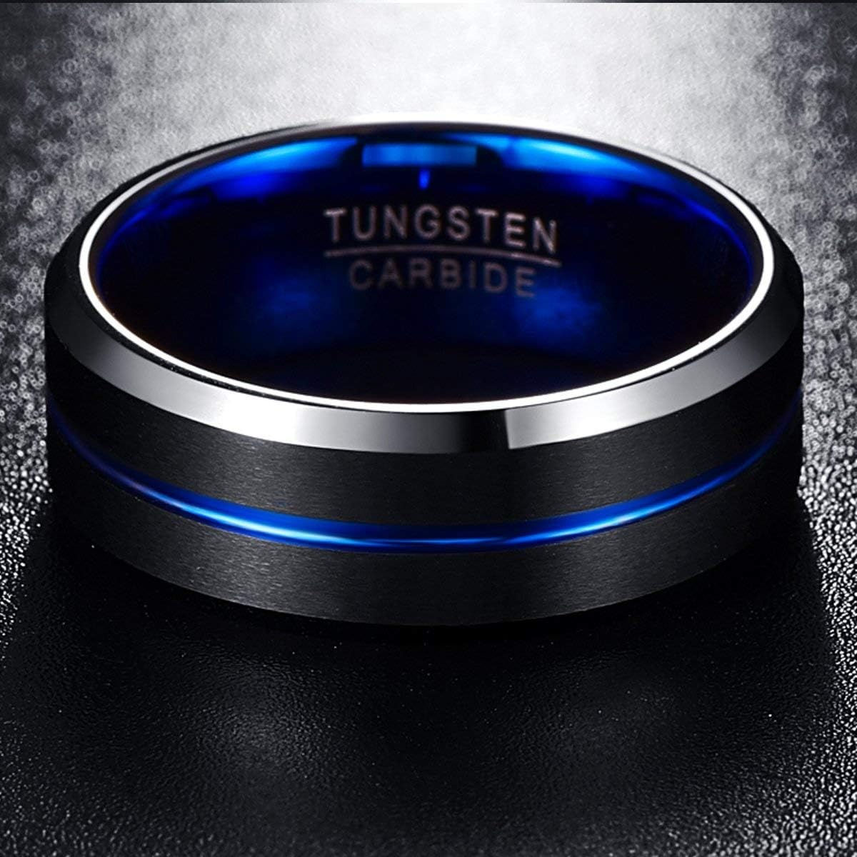NUNCAD Tungsten Ring for Men Women Wedding Bands 4/6/8/10mm Width Multicolor Available Groove Beveled Edges Engraved I Love You Size 4 to 17