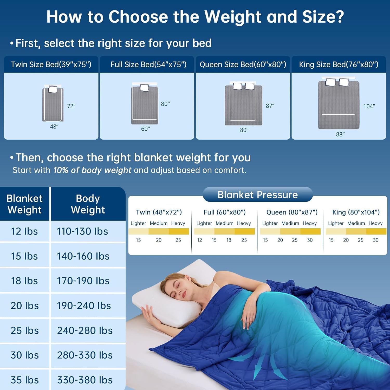 Personalized Comfort Fit: The cooling weighted blanket is available in multiple weight options ranging from 12 to 35 pounds. Choose a weighted blanket around 10% of your body weight for optimal comfort — start lighter if needed, adjust within 3-17 days, and unlock deeper sleep