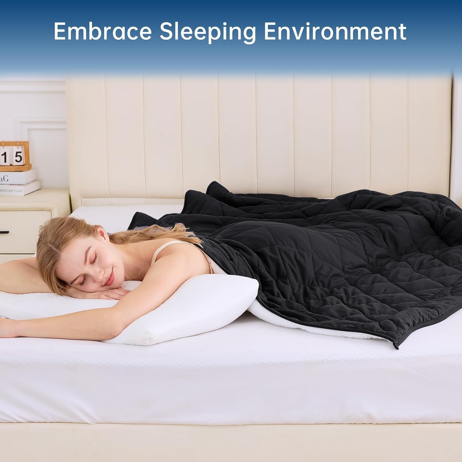 Double-Sided Comfort Zone: Our reversible weighted blanket features smooth velvety brushed for cooler nights and cozy sherpa fleece for extra warmth— snuggle into cozy plush sherpa or smooth velvety brushed, enjoy year-round comfort while lounging on the couch or sleeping deeper