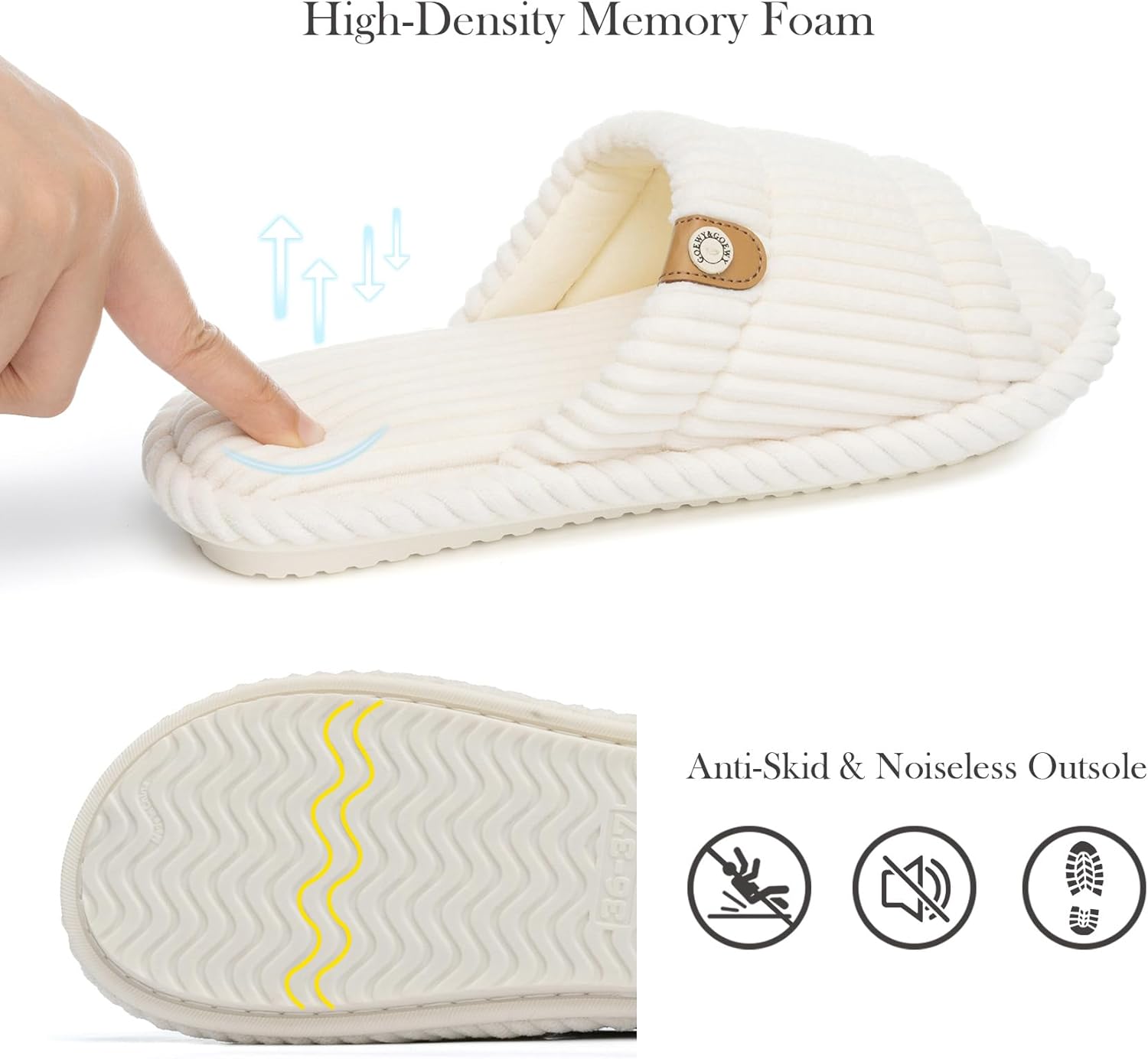 Open Toe Slippers for Women Indoor and Outdoor with Memory Foam Cute Slipper Soft House Shoes Slides Sandals Slip On Gifts for Women Mom Her Ladies Bridesmaid Corduroy