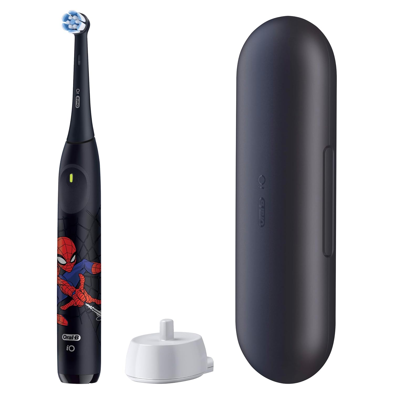 The Oral-B iO Kids Spiderman Limited combines gentle micro vibrations with Oral-B’s dentist inspired round brush head to remove more plaque in hard-to-reach areas vs. a regular manual toothbrush, and deliver powerful cavity protection for kids 6+. It is designed to teach kids to become independent brushers and develop healthy habits for life, with features that make brushing fun: 2-min music timer, automatic gum pressure sensor, and 3 cleaning settings. Includes a travel case to store and carry the toothbrush wherever your kids go. 9 out of 10 kids love brushing with it!