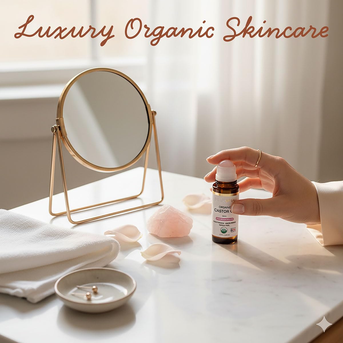 DUAL APPLICATION: Features a premium rose quartz roller applicator for gentle and easy facial massage while applying the nourishing castor oil