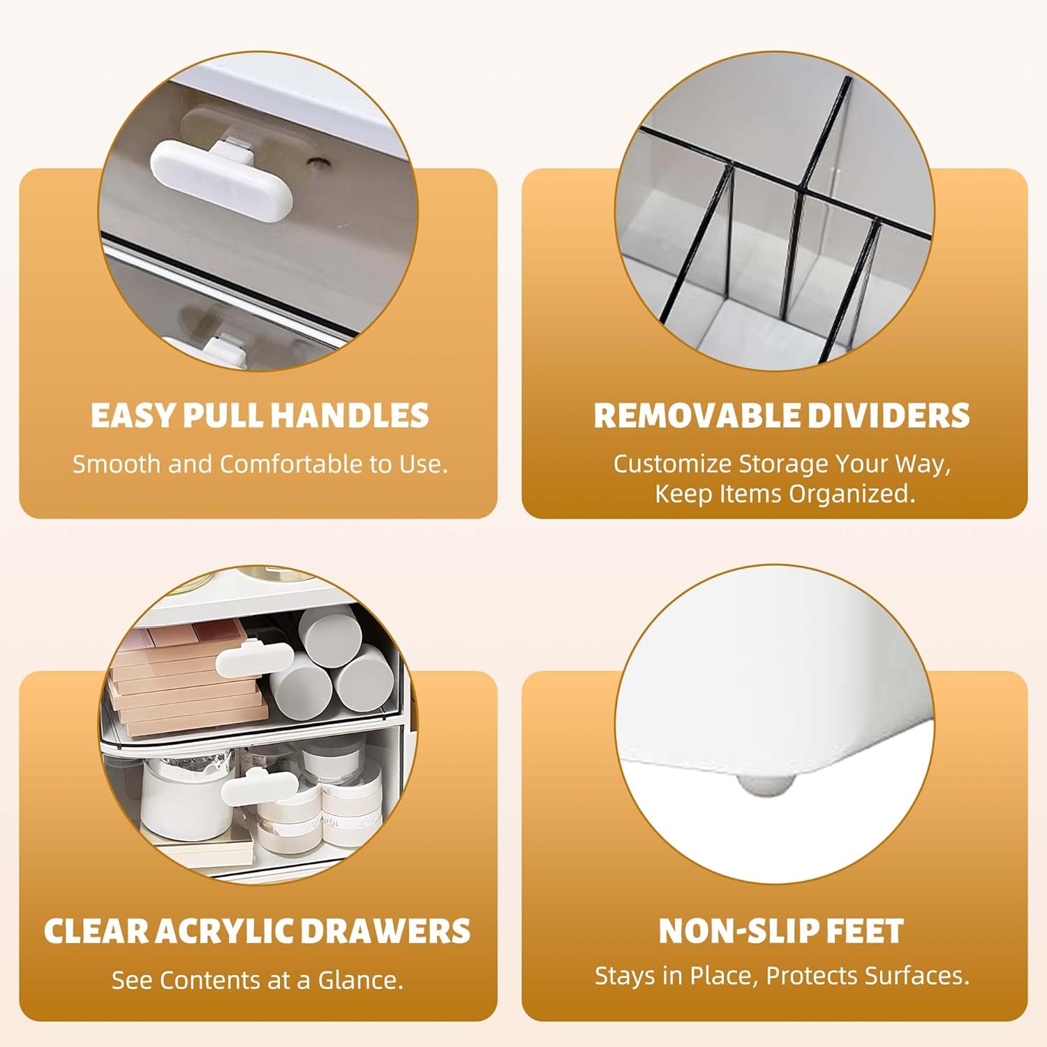 【ELEGANT & DURABLE DESIGN】 White makeup organizer crafted from high-quality, water-resistant PP, PS, and acrylic. This sturdy structure not only protects your products but adds a touch of elegance to any vanity setup. Men organizer is sturdy, waterproof, and built to last. The premium finish offers a sleek and modern look suitable for any bathroom or vanity organizer.