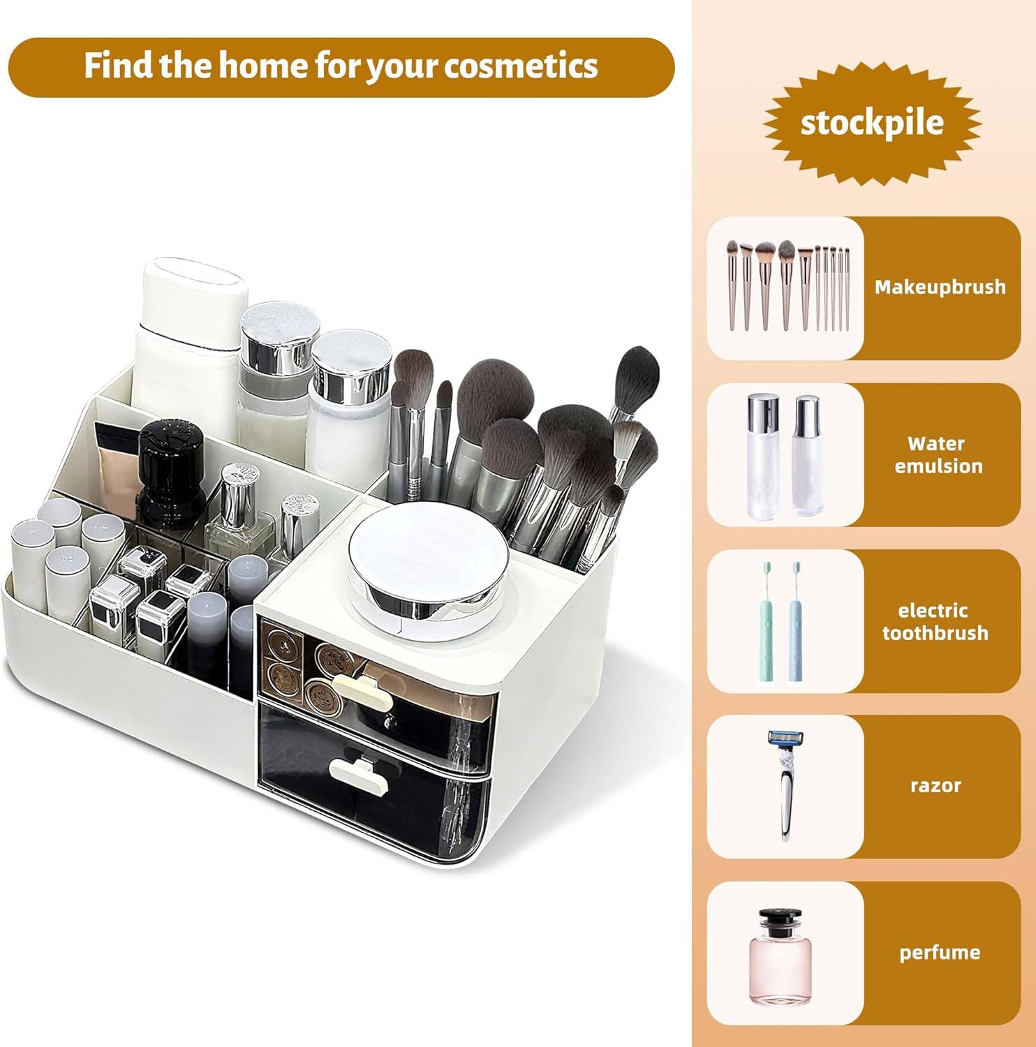 Perfume Organizer Makeup Organizer Countertop with Drawers Cologne Organizer for Men Women White Vanity Organizer Bathroom Organizers and Storage Skincare Organizer for Vanity Toothbrush Holder Brush