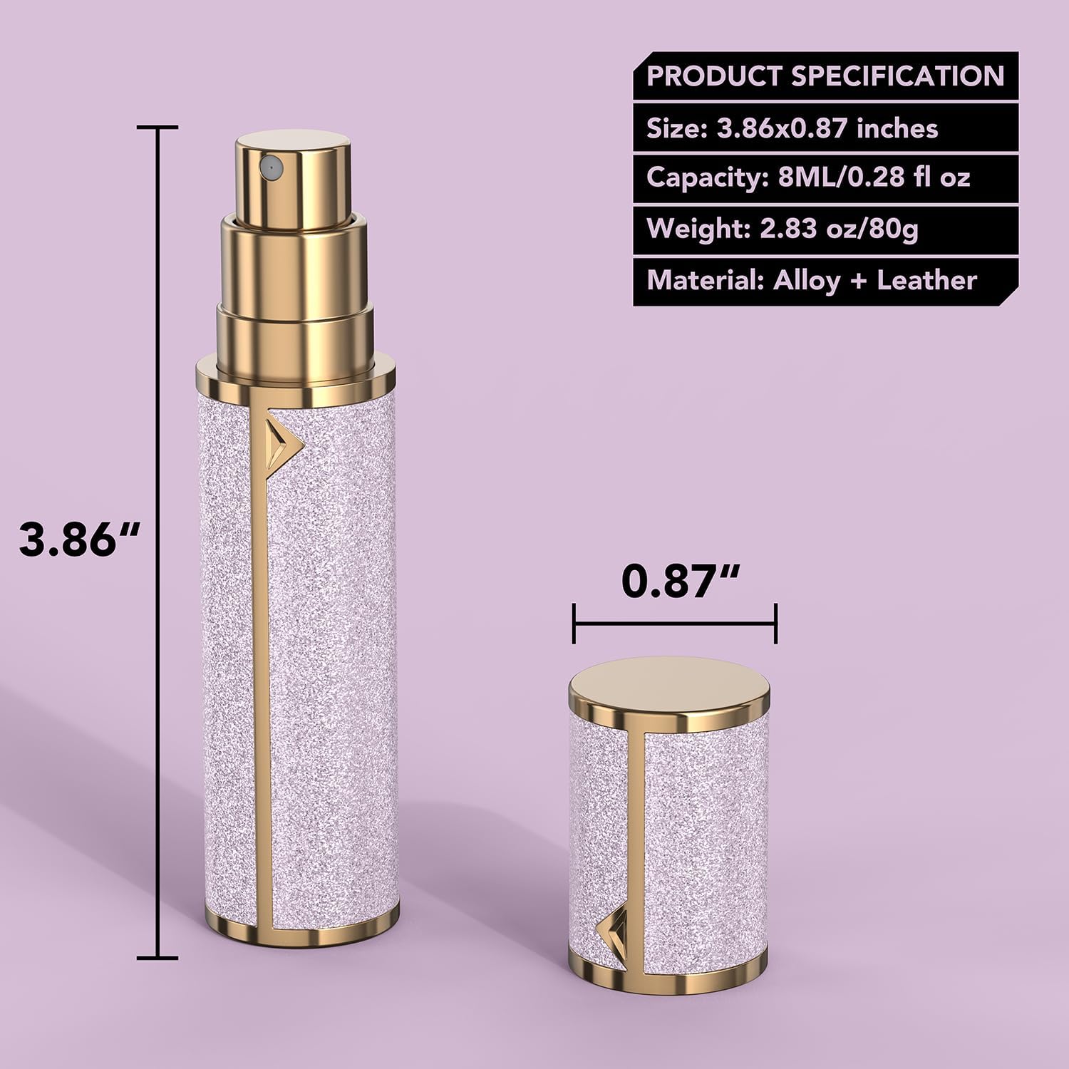 Premium Quality: This small perfume spray bottle is made of glitter faux leather and gold-plated metal, elegant and stylish design for both men and women, great gifts for the scent lovers