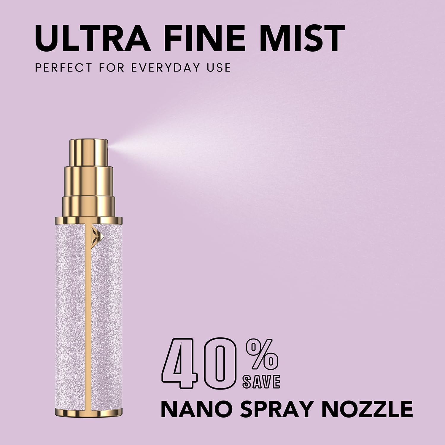 Fine Mist: Equipped with an advanced 0.02mm nano nozzle, this travel size perfume refill bottle provides a super fine, even mist, saving you 40% of your perfume