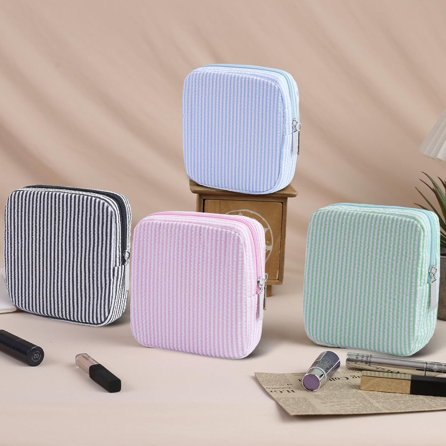 Period Bag for Teen Girls | Striped Sanitary Napkin Storage Bag | Cute Pads Pouch for Period | Menstrual Pouch for Pads, Tampons, Menstrual Cups & Panty Liners | Perfect for Travel & Daily Use