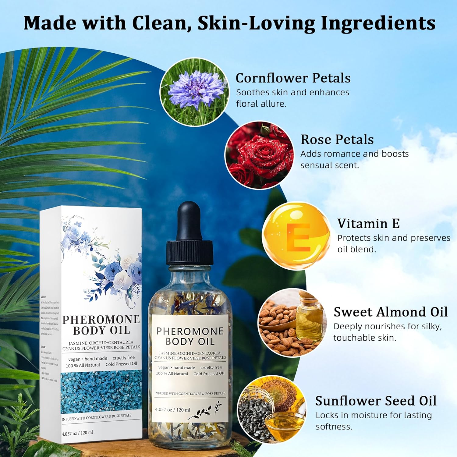 Pheromone Body Oil Perfume for Women – With Rose Petal, Sweet Almond Oils, and Cornflower Petals, Vanilla, Attractiveness Enhancer & Confidence Booster – Long-Lasting Fragrance
