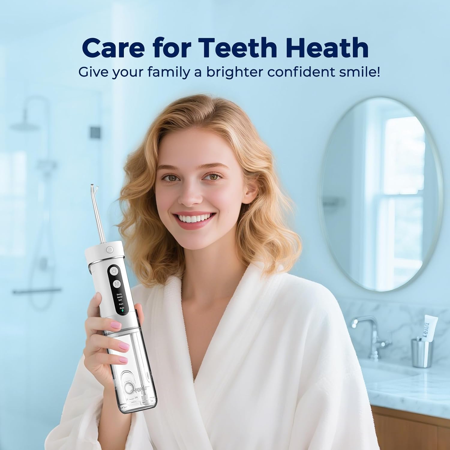 Ultra-Portable & Travel-Ready Design – Weighing just 500g, this mini cordless water flosser collapses into a travel size water flosser perfect for toiletry bags, backpacks, or suitcases. Its 180mL leak-proof tank and 360° rotating nozzles ensure deep cleaning anywhere—ideal for travel water flossers for teeth during flights, road trips, or daily commutes.