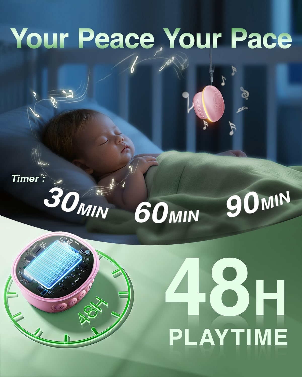 [48H Battery Life & Smart Timer] Get peace of mind with 48-hour battery life! No more mid-night shutdowns to wake you or your baby. Select from 30/60/90-minute timer options to suit your routine: set the sleep assistant at bedtime to fall asleep deeply, then auto-off without disruption. Well-suited for overnight use or travel, Qobayleo portable sound machine delivers consistent comfort through long nights and days.