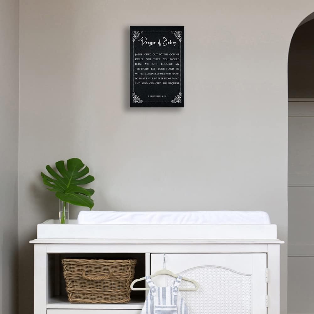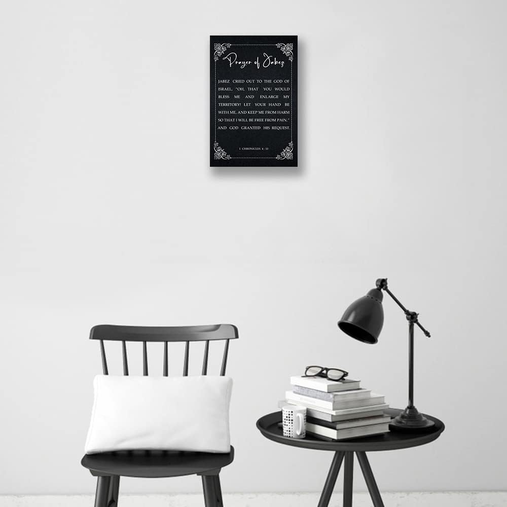 Prayer Bible Verse Wall Art Framed Quotes Poster Canvas 1 Chronicles 4 10 Scripture Wall Art Bible Posters Black and White Artwork Wall Decor (12x18in,Framed)