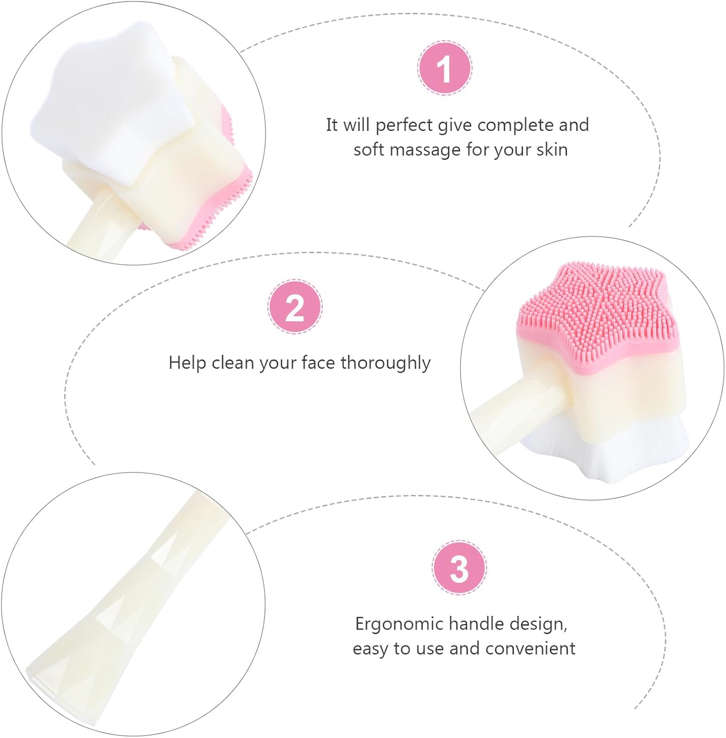 – Ergonomic handle design, easy to use and convenient face cleansing device.