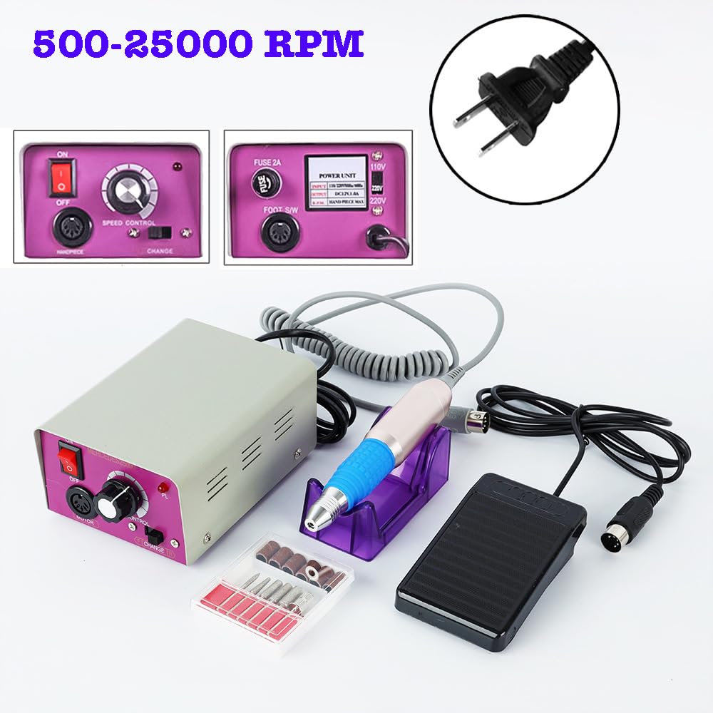 Nail Drill Machine of 25000RPM variable speed, powerful enough to grind, sharpen, polish, sand or remove almost all kinds of nail polish, and trim thick nails
