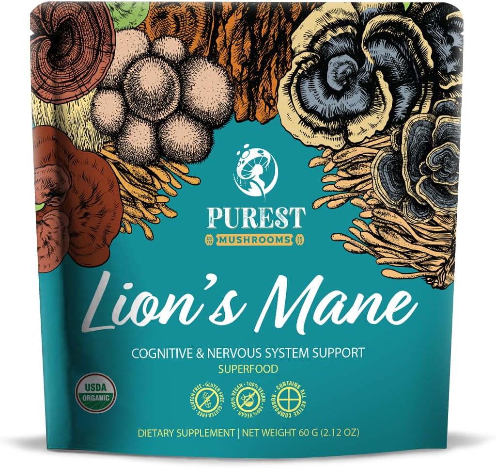 Purest Mushrooms Lion’s Mane Powder – Organic Lions Mane Mushroom Extract for Cognitive & Nervous System Support – Brain Supplements for Memory and…