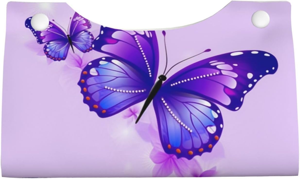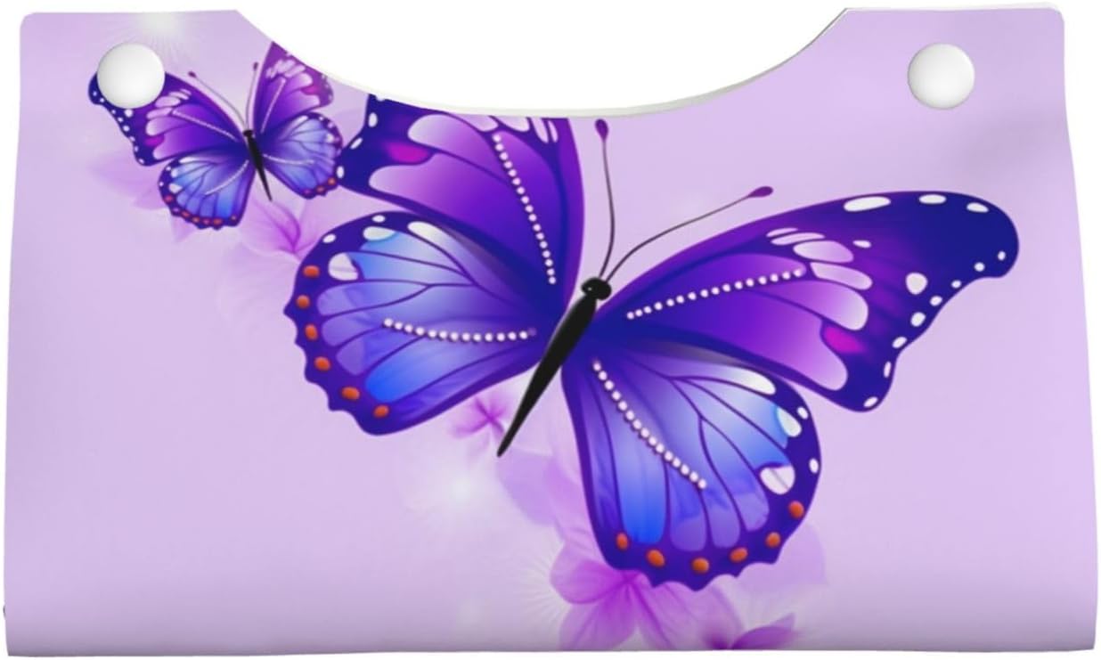 Convenient To Store: Made with premium quality PU leather. The Purple Butterfly tissue box case Stylish Tissue Box Holder can be foldable reusable for easy storage, also can be effortlessly restored to its original shape. Easy to cleaning, just wipe with wet cloth