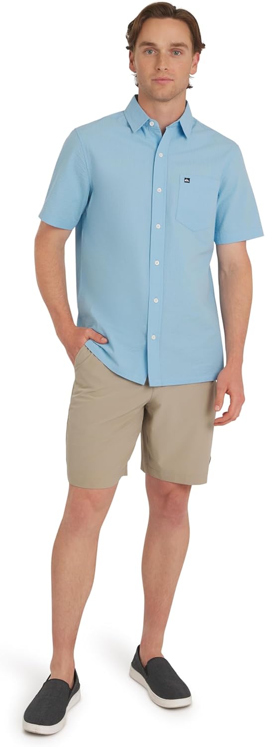 ngineered for the man who demands both performance and polish, these Quiksilver Hybrid Shorts offer the ultimate in versatility for a seamless transition from the water to the street. With a tailored fixed waist secured by a button and zipper closure, these shorts maintain a sharp, classic appearance that’s perfect for dressing up. This Regular Fit design features a versatile 9-Inch Inseam that hits comfortably above the knee, making them ideal for any setting. Whether you’re surfing, swimming, or boating, these truly versatile shorts dry fast and offer maximum comfort. Easily pair them with a polo shirt for the golf course or a button-down for dinner and travel—they’re the only shorts you need. Experience premium comfort and all-day durability built into every detail. The comfortable four-way stretch fabric, crafted from a flexible Polyester/Spandex blend, ensures unrestricted movement and lasting wear for all your adventures. Designed with practicality in mind, these shorts include two deep side pockets and two back pockets, all featuring breathable mesh lining to ensure quick drainage and comfort after a dip. Quality woven stitching throughout the garment guarantees long-term durability, so these shorts are ready to handle whatever your active lifestyle throws at them. These essential shorts are also effortlessly low-maintenance. For your convenience, the hybrid design is machine washable, letting you simply toss them in the wash to keep them looking and feeling fresh in no time. Finished with the authentic Quiksilver logo detailing, these shorts are a true expression of surf style and everyday function. Dive into a world where surf culture meets cutting-edge innovation; Quiksilver delivers the authentic gear that fuels your passions, from the waves to the streets and beyond.