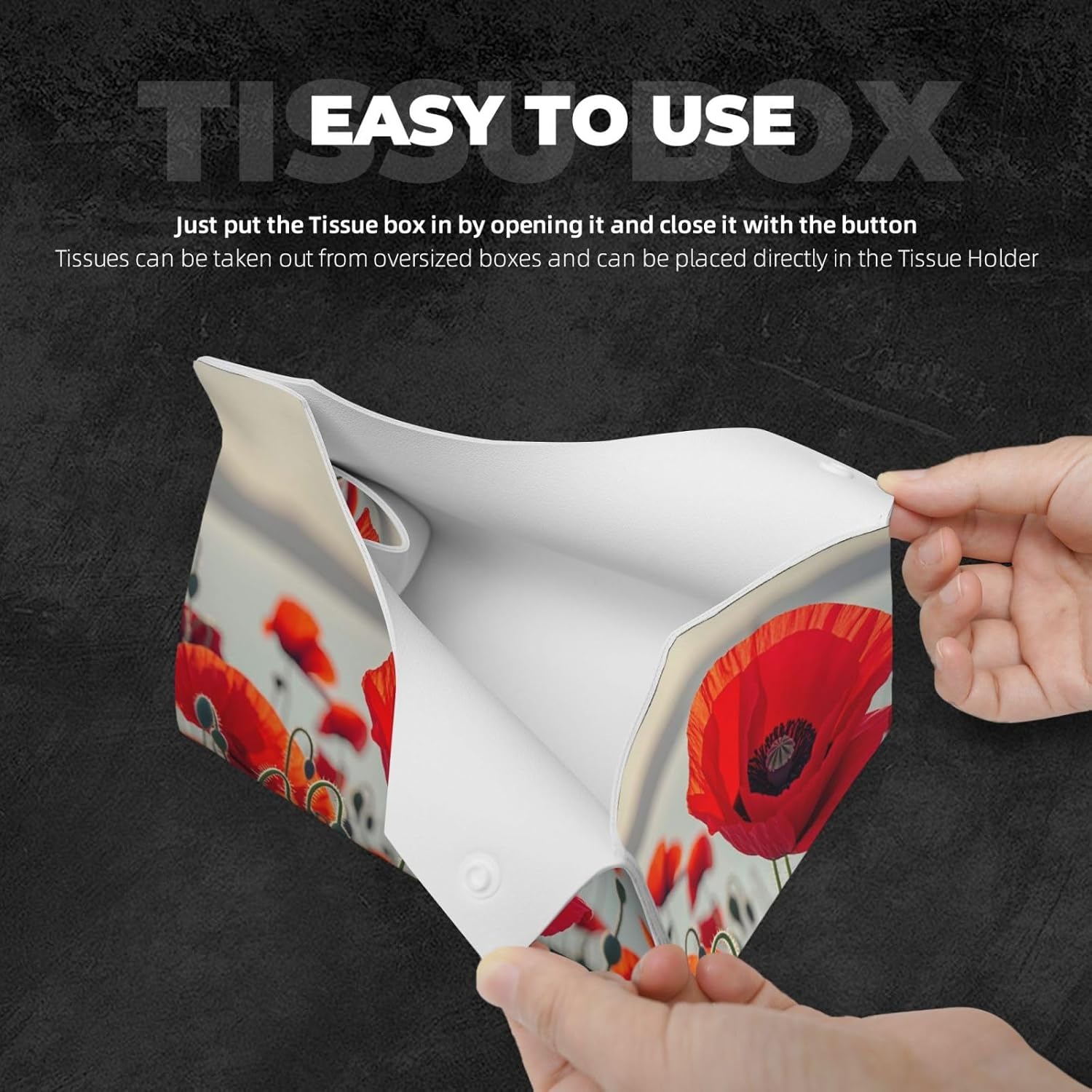 Convenient To Store: Made with premium quality PU leather. The Red Poppy Flower tissue box case Stylish Tissue Box Holder can be foldable reusable for easy storage, also can be effortlessly restored to its original shape. Easy to cleaning, just wipe with wet cloth