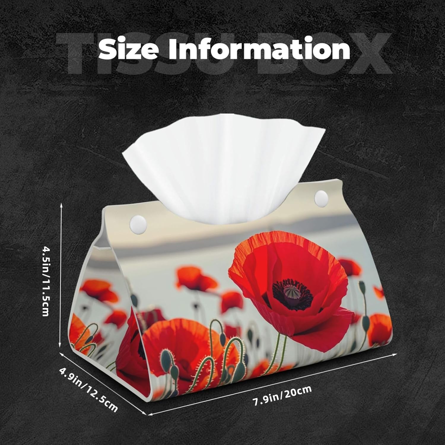 Ideal Size: With dimensions of 7.9 x4.9 x4.5 in, our Decorative Tissue Cover for Bathroom Red Poppy Flower rectangle tissue box holder is a universal size that fits most brand tissue packs seamlessly. It’ s an ideal gift for housewarming or home decoration