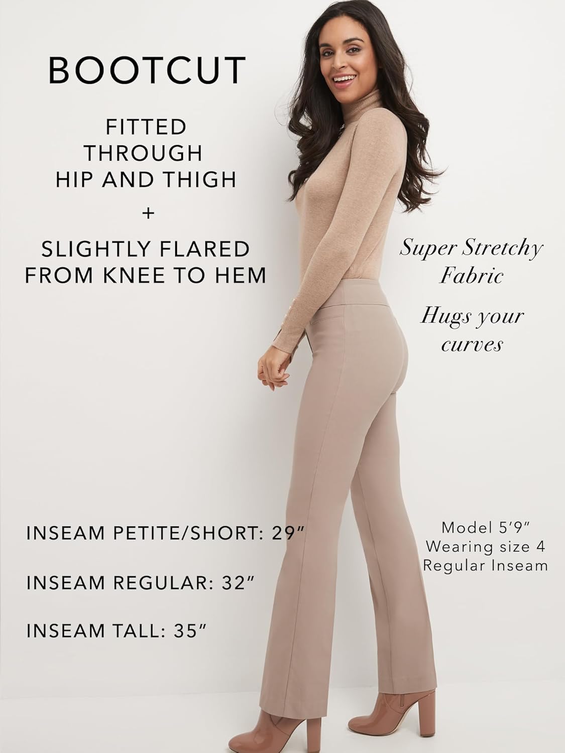 Rekucci Womens Ease into Comfort Stretchy Business Casual Bootcut Pull-On Everyday Office Pant in Regular/Tall/Petite Sizes