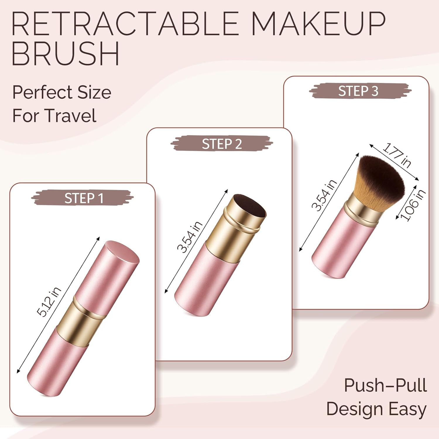 Retractable Kabuki Makeup Brush – All-in-One Travel Foundation, Powder, Blush, Liquid & Cream Face Brush | Portable & Easy to Use for Women & Beginners (Rose Gold)