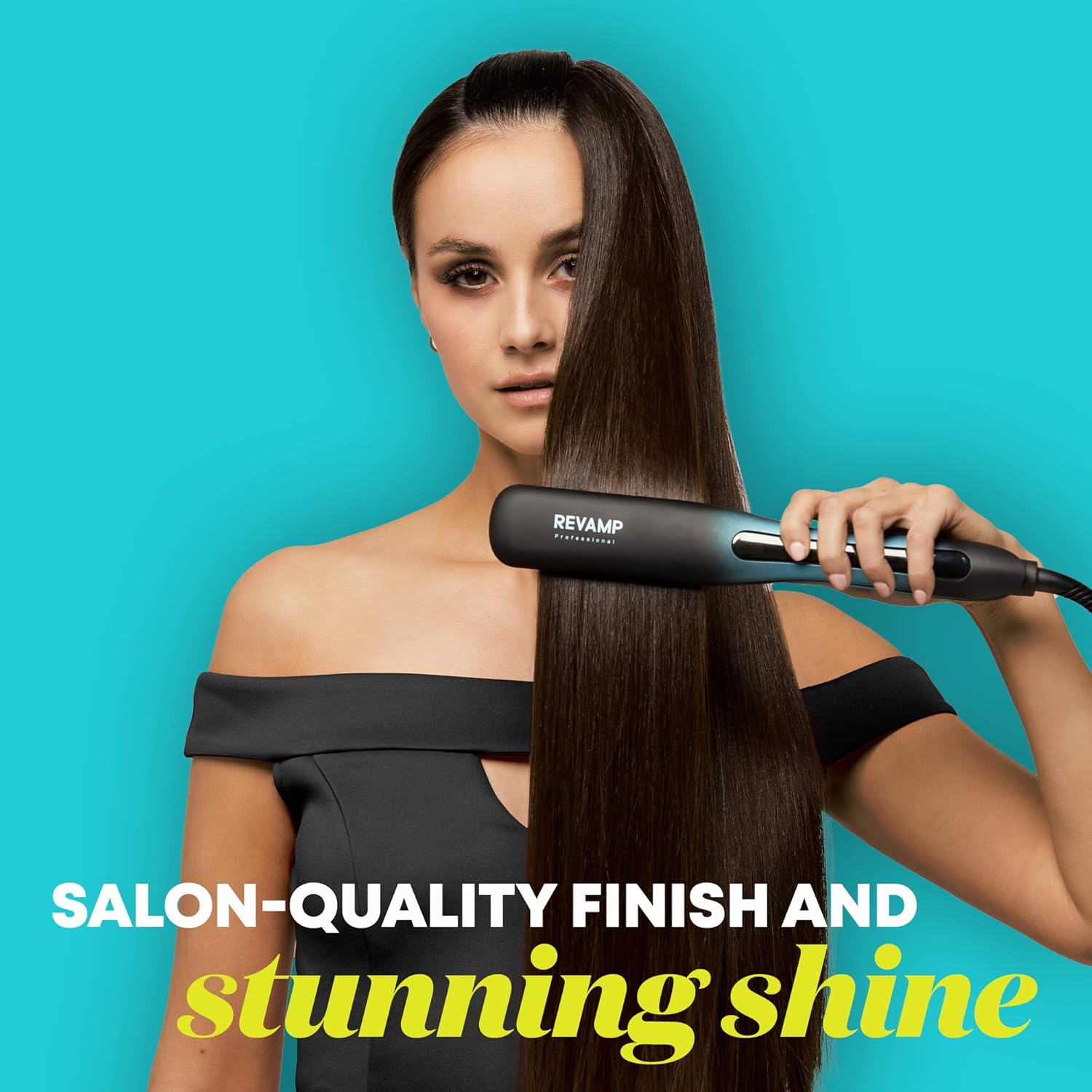Revamp Progloss Wide Ultra X Shine 1.5-Inch Flat Iron Hair Straightener – Ceramic Hair Straightener with Keratin, Argan & Coconut Oil Infused Ceramic & Ionic Plates, Ideal for Long, Thick, Curly Hair