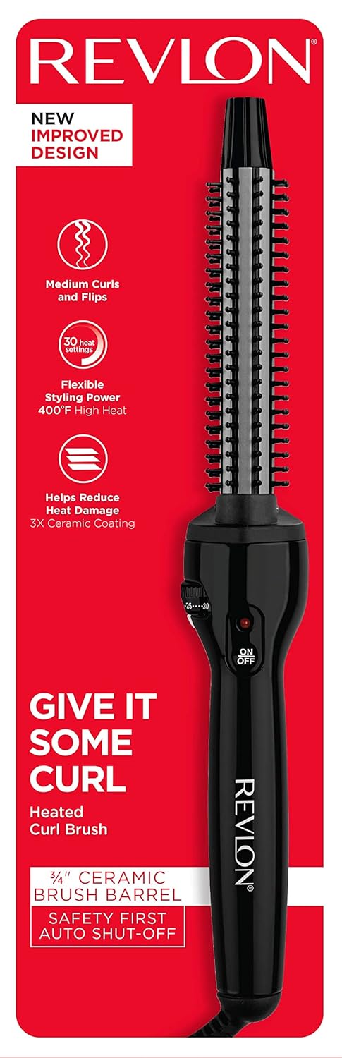 REVLON Perfect Heat Ceramic Curling Iron Brush, Black, 3/4″