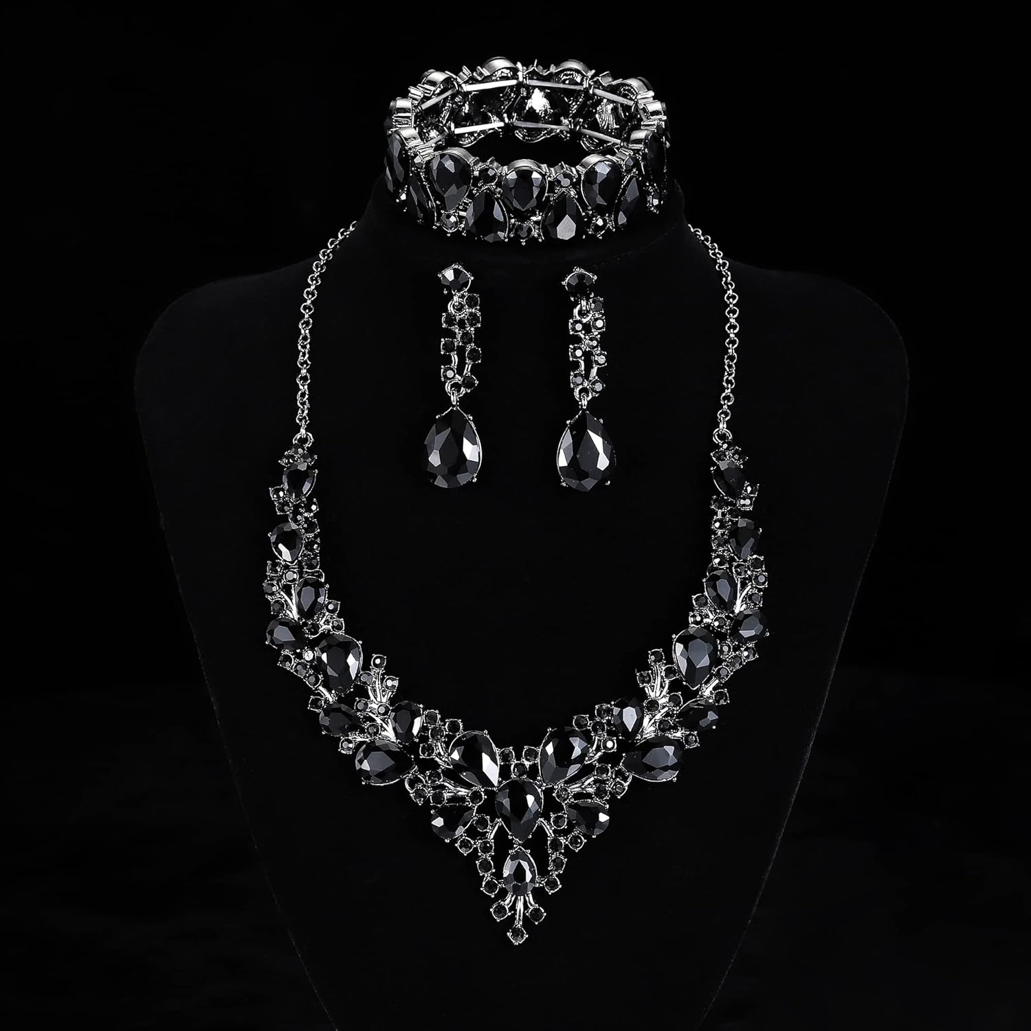 Rhinestone Bridal Jewelry Sets for Women Crystal Necklace Earrings Bracelet Set Silver-Tone Wedding Bridal Bridesmaid Gifts fit with Wedding Dress