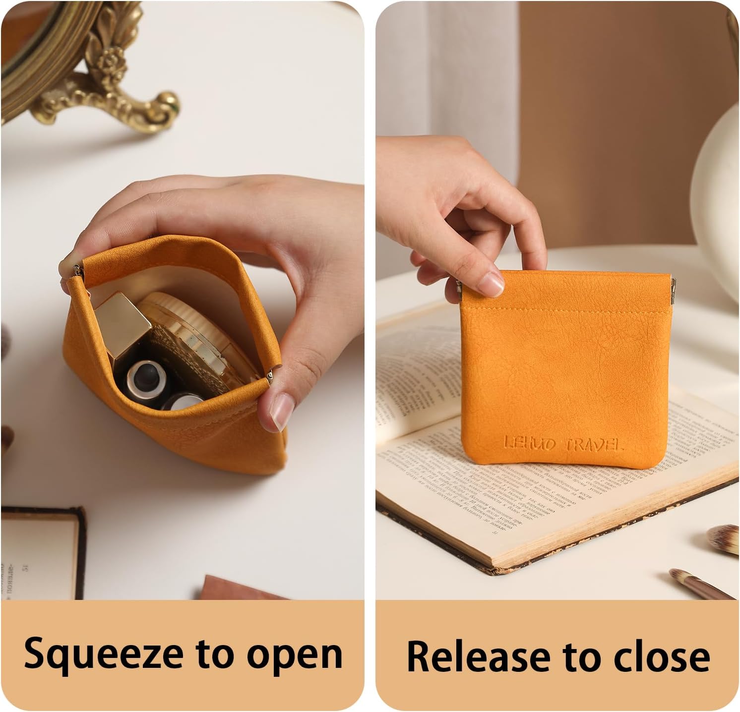 One-Hand Operation:Features an elastic snap closure—simply press to open and release to close. The design allows quick access to your items and restores its shape instantly. Perfect as a coin purse pouch, small cosmetic pouch, or pouch for feminine products