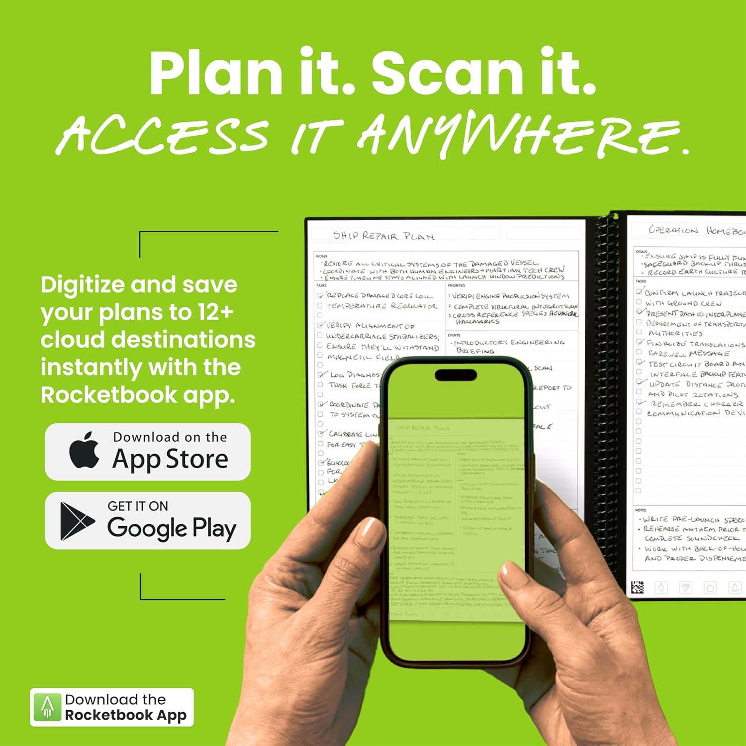 Plan, Digitize, Erase, Reuse: Track to-dos & manage schedules with the included Pilot Frixion Pen, digitize effortlessly using the Rocketbook app, store in your preferred cloud destination. When done, simply wipe the pages clean with a towel & water.