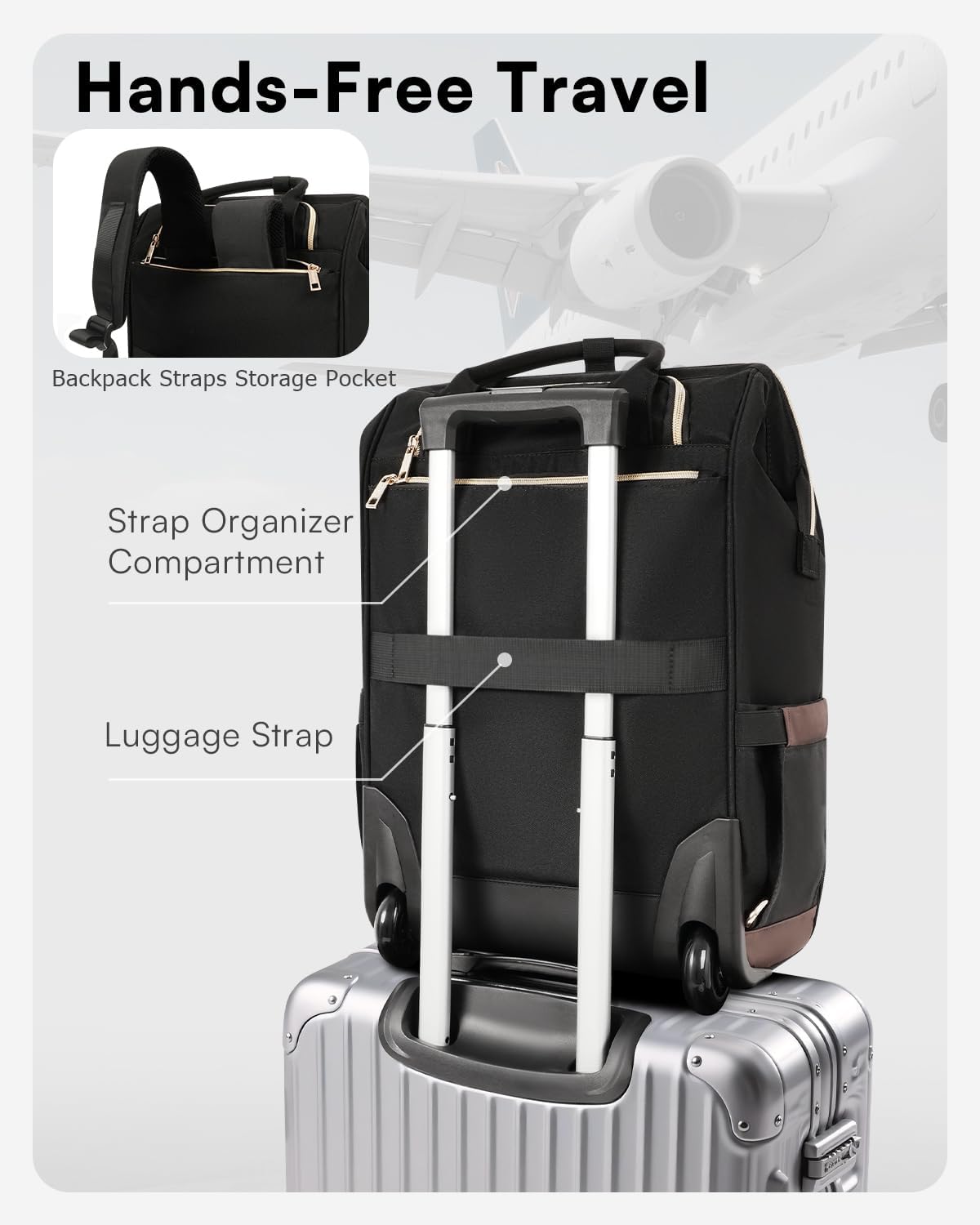 New Upgraded 2-in-1 Vertical & Horizontal Storage: This rolling backpack for women features a top-opening design that allows you to pack easily and access quickly to meet your different needs to the greatest extent. To make sure your every outing is worry-free, the rolling backpack combines modern style with great functionality, making it the ideal backpack with wheels for whatever your needs