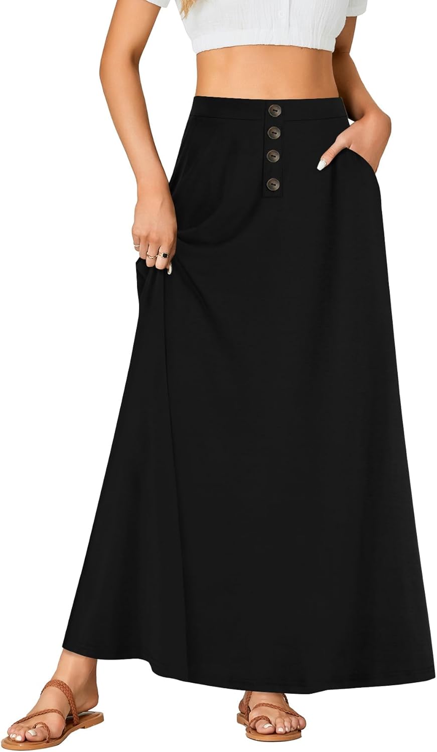 Rooscier Women’s High Waist Button Front A-Line Long Maxi Skirt with Pockets