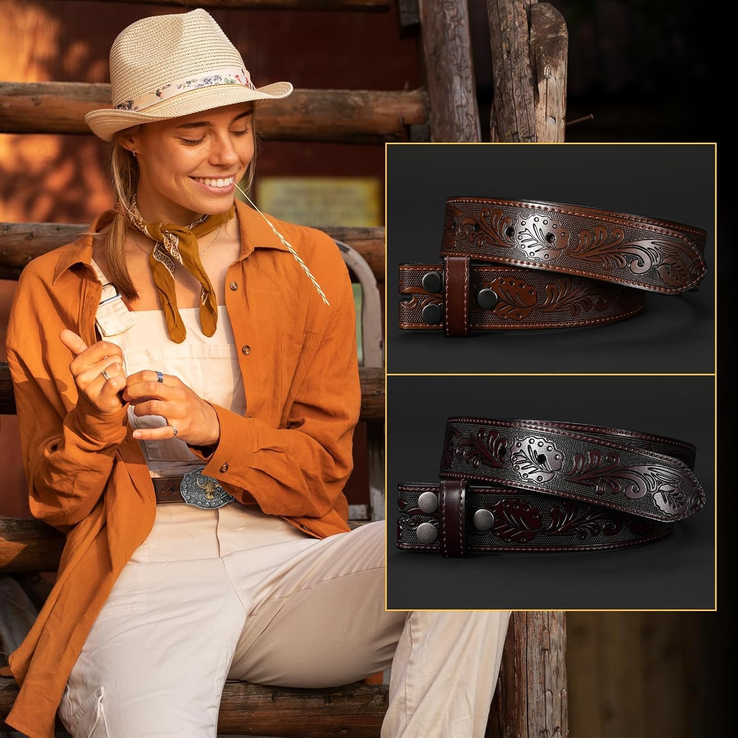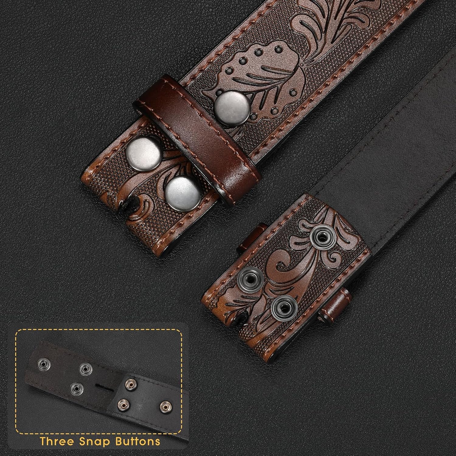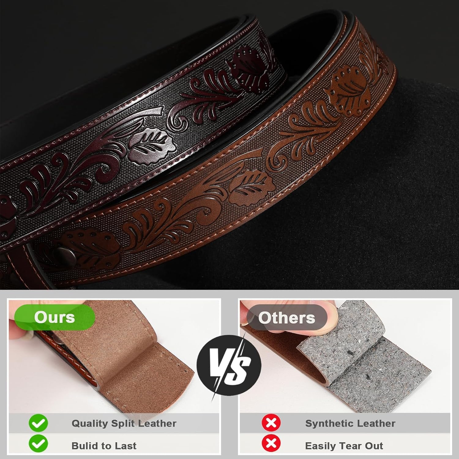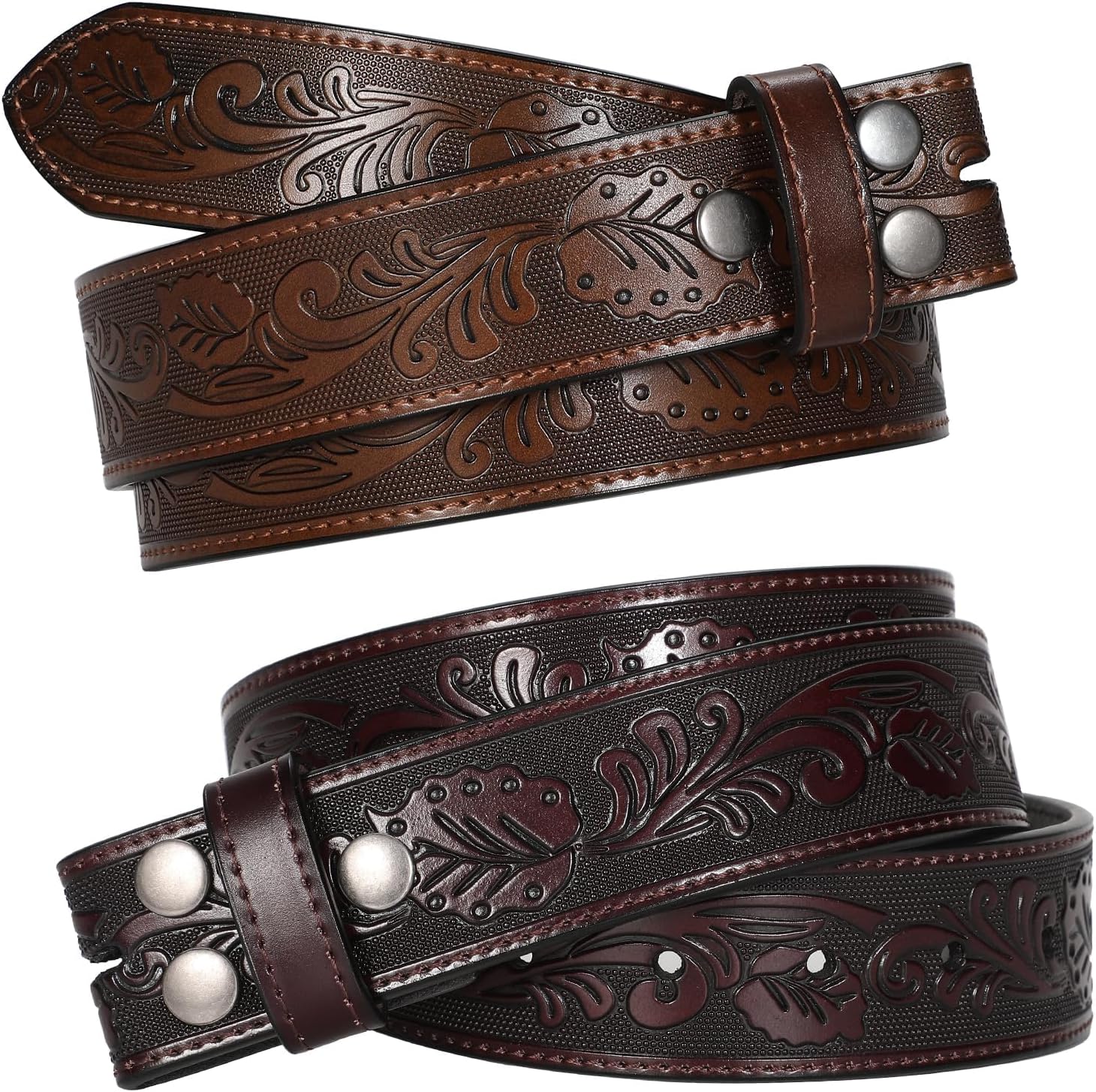 SANSTHS 2 Pack Western Belts for Men without Buckle, Cowboy Belt for Buckle Western Leather Belt Straps for Jeans