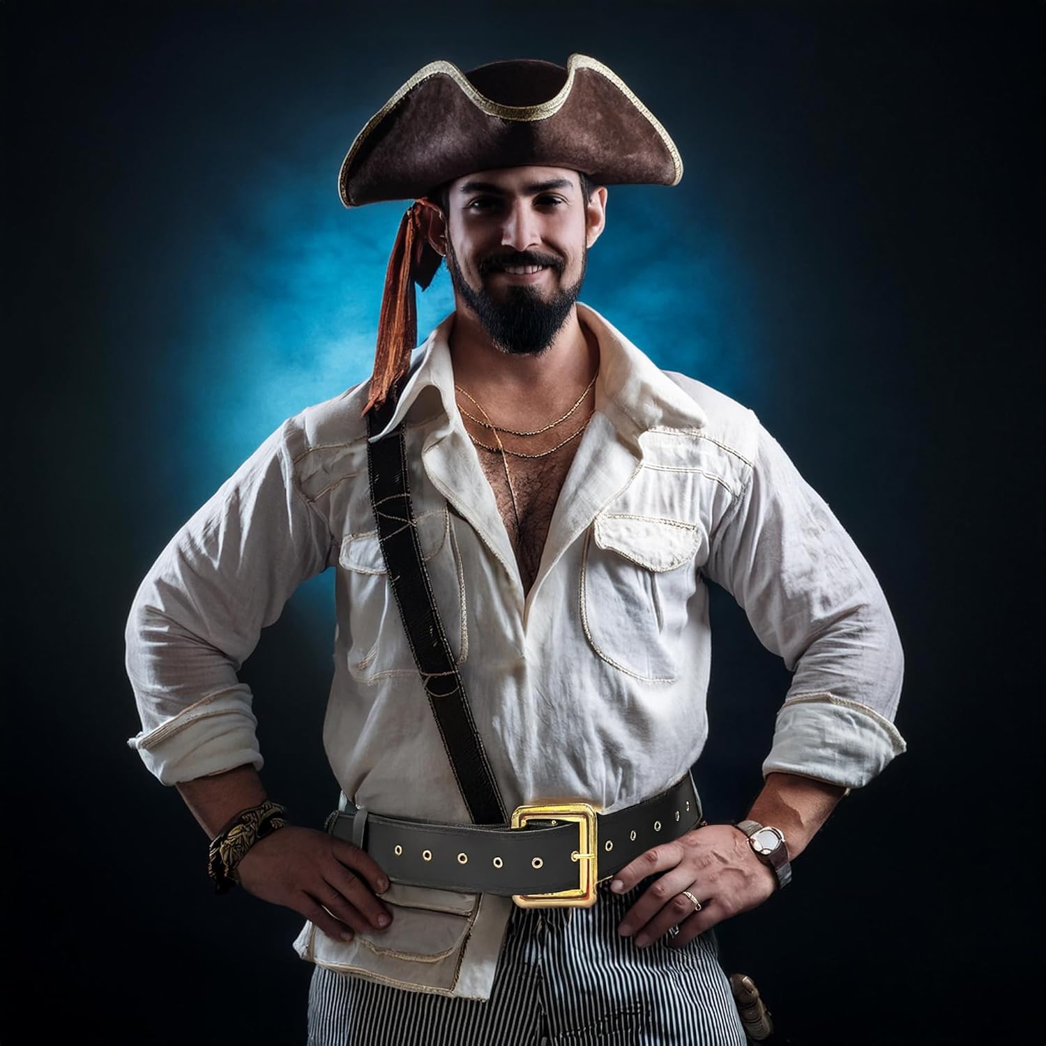 Transform your costume into something spectacular with this versatile 57-inch black belt featuring an eye-catching gold buckle. Perfect for multiple costume characters, this unisex accessory adds authentic flair to both Santa and pirate ensembles. The sleek black design with its striking gold buckle makes it equally suitable as a fashion statement for everyday wear. The generous 57-inch length accommodates various body types and costume layers, while the classic styling ensures it works well with different outfits. Whether you’re dressing up as a jolly St. Nick, channeling your inner swashbuckler, or simply looking to add a bold accent to your wardrobe, this belt delivers both style and functionality. The durable construction stands up to costume party fun while maintaining a polished appearance that draws attention to your outfit.