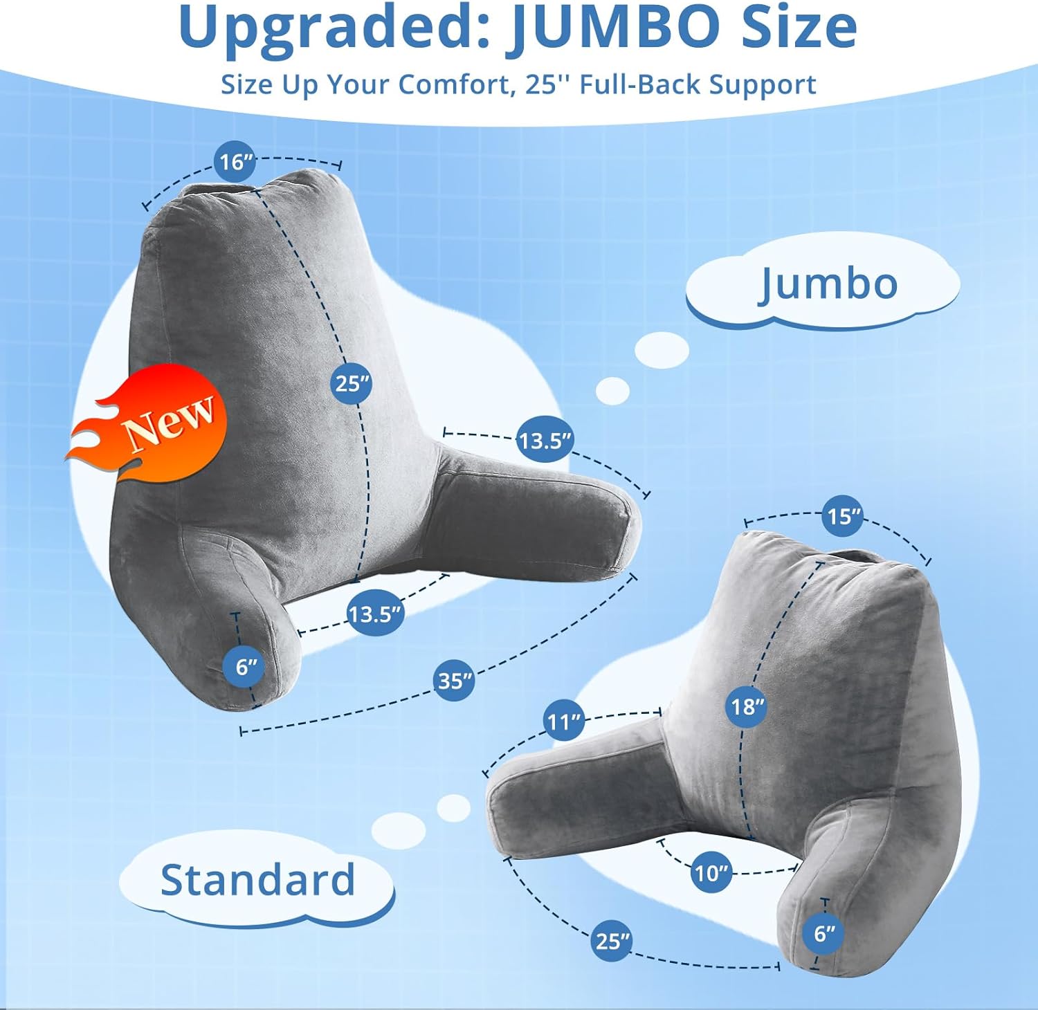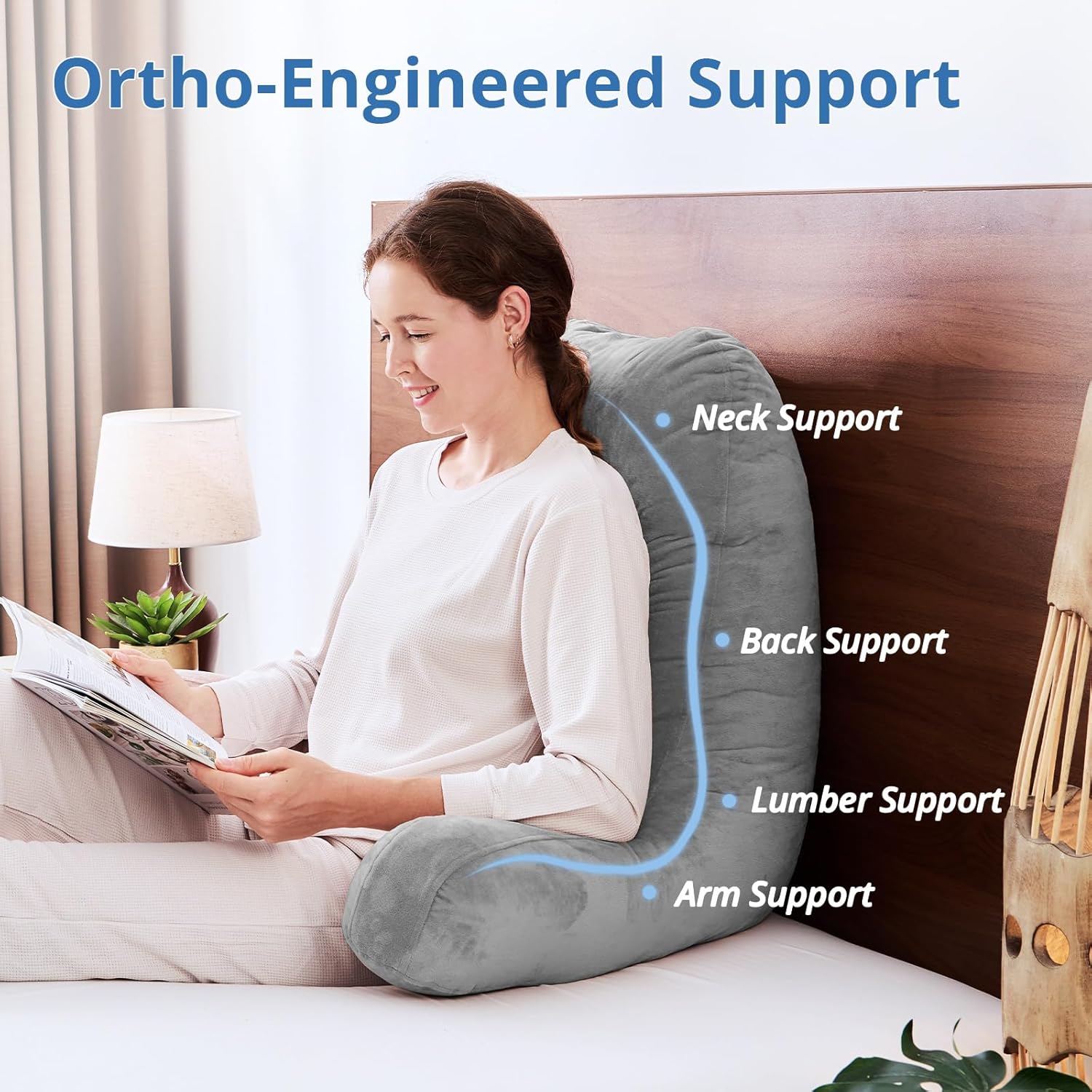 Premium Polyester Filling: The SASTTIE Jumbo reading pillow blends 40% 7D silicified fiber and 60% 3D polyester fiber, providing an optimal balance of support and comfort. This premium filling ensures a restful experience, great for sitting up in bed